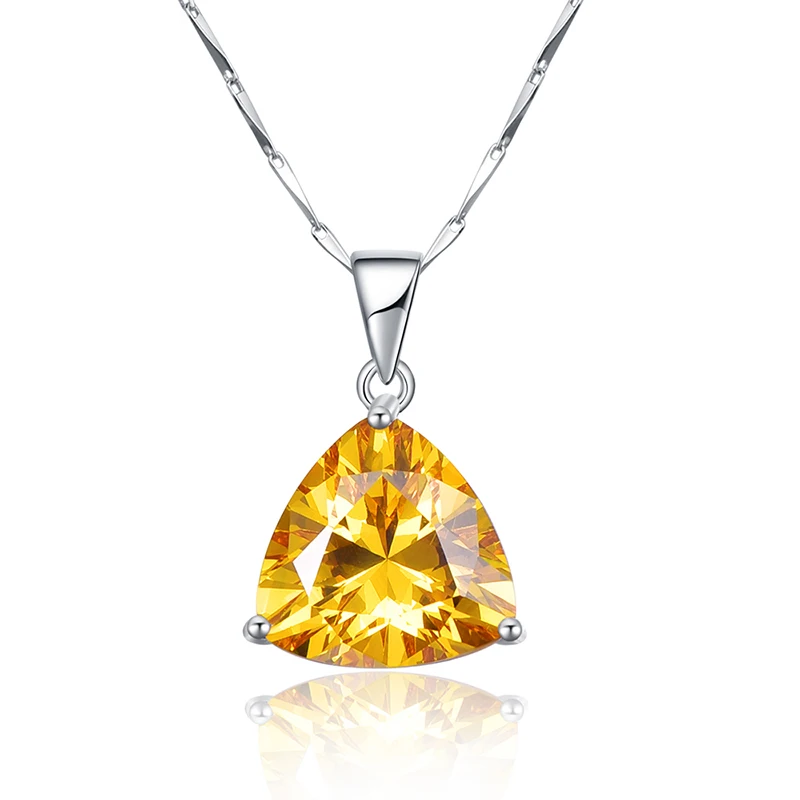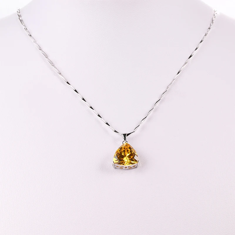 9.35Ct citrine pendant necklace 925 sterling silver chain Geometric Triangle Necklaces&Pendants Jewelry Collar Colar de Plata