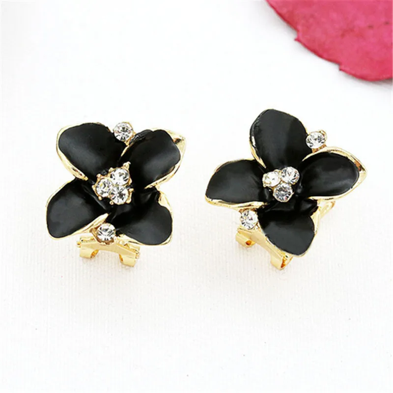 AWAYTR Brilliant Crystal Piercing Ear Clip on Earrings for Women 4 Color Flower Earrings Female Fashion Jewelry Wholesale