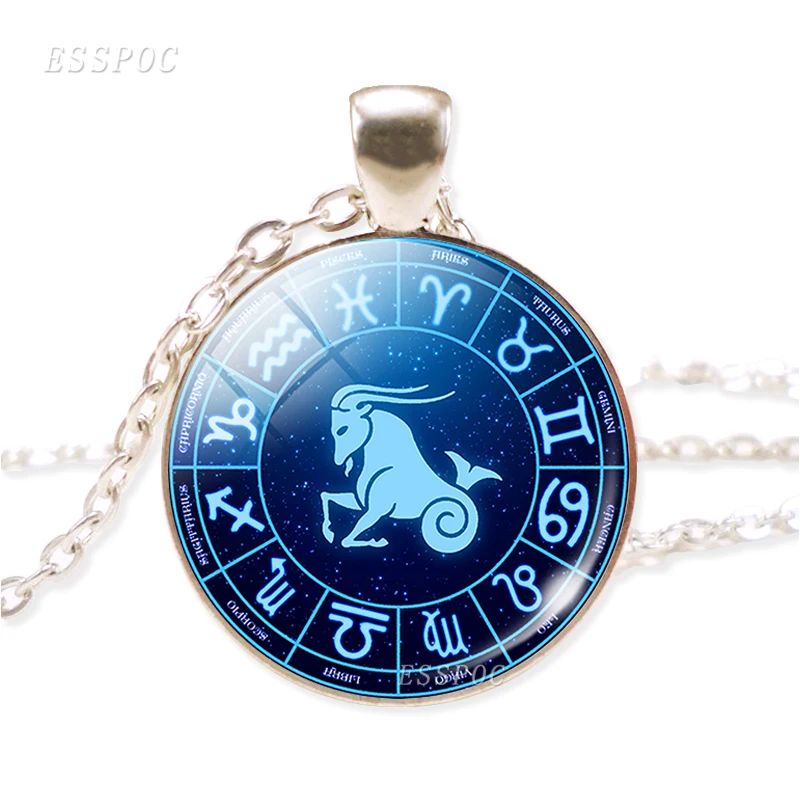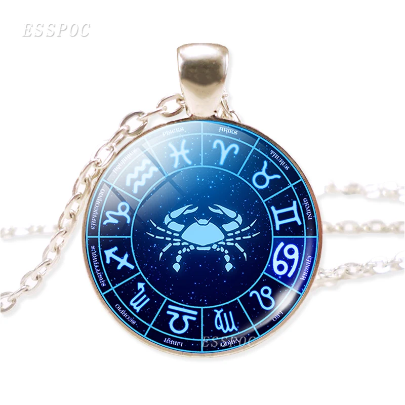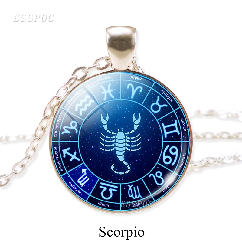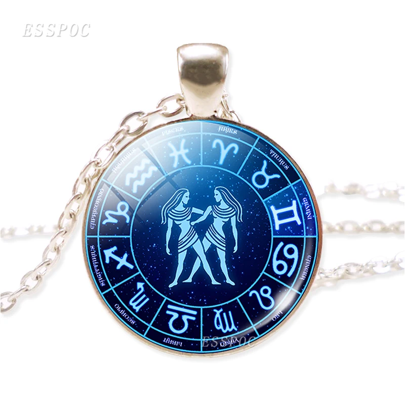 Birthday Gift 12 Zodiac Sign Silver Chain Glass Necklace Pendant Aries Leo Libra Scorpio Constellation Jewelry
