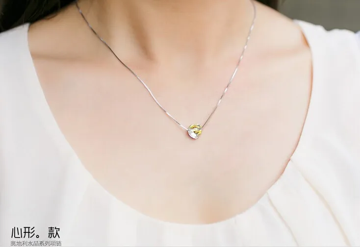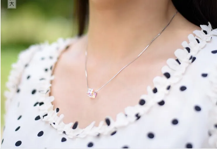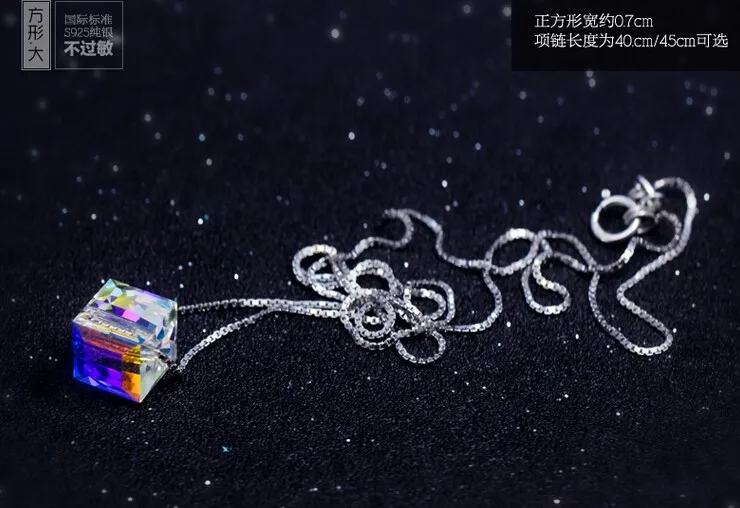 Real. 925 Sterling Silver jewelry Color Changed Austria Crystal Geometric Heart/ Star/ Cube Pendant Necklace 18" Chain X436