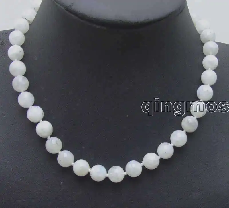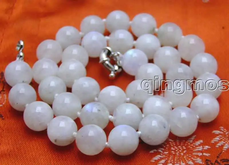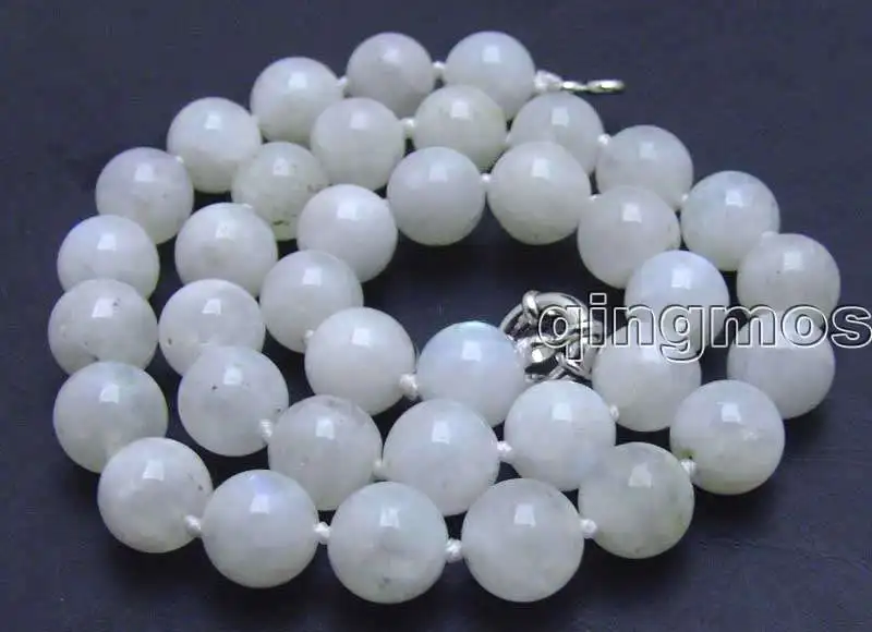 SALE! Genuine Big 10mm Perfect Round White Natural High quality MoonStone 18" necklace-nec5821