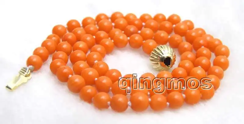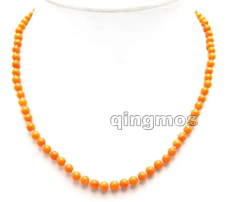 SALE Small 4-5mm Round Natural Orange High Quality Coral 17'' Necklace -nec5956