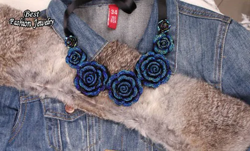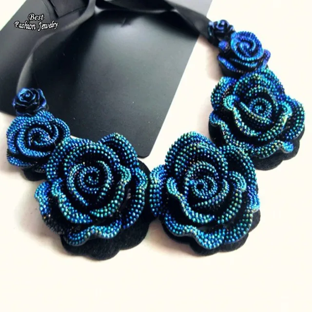 Women's Pretty Consume Short Necklace Big Blue Rose Pendant False Collar Exquisite Female Banquet Accessory
