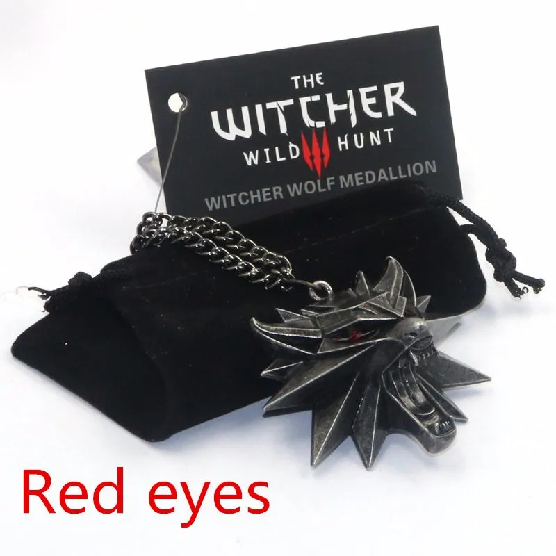 The Witcher 3 Wild Hunt Medallion Pendant black Chain alloy red eyes magic animal Necklace for cartoon Video games Top quality