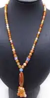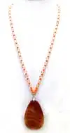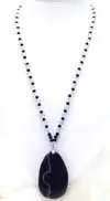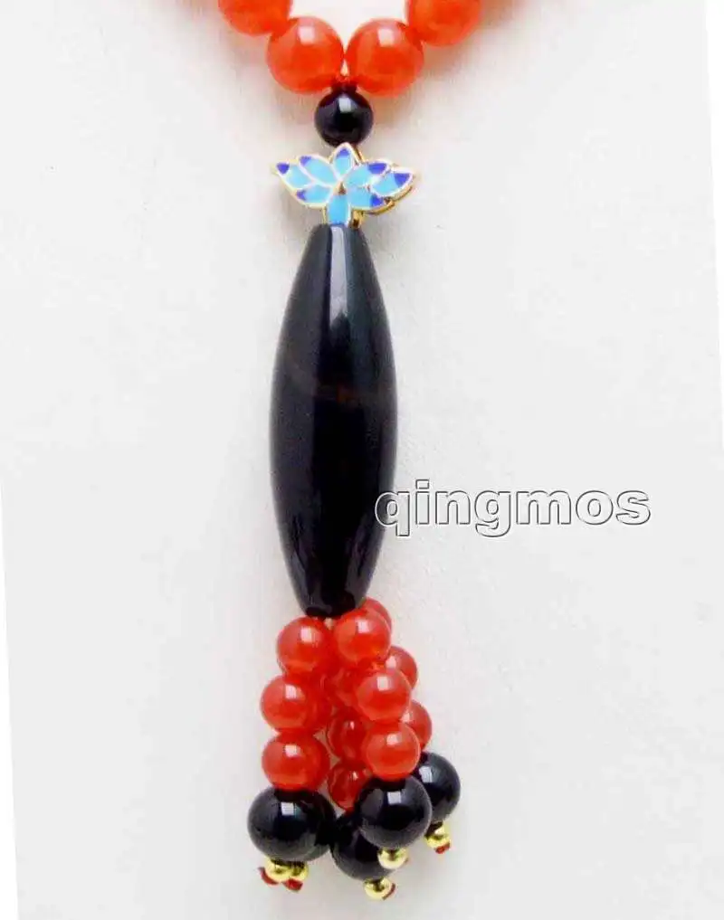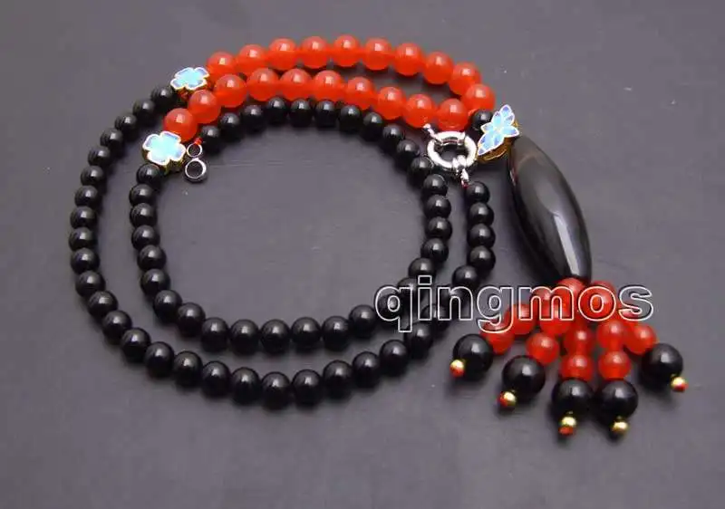 Genuine Big 10*42mm Olivary shape Natural Black agate Pendant with 6mm Black agate and 6mm red jade 22'' Necklace-nec5980