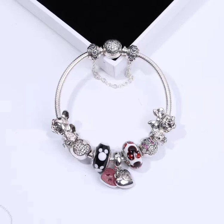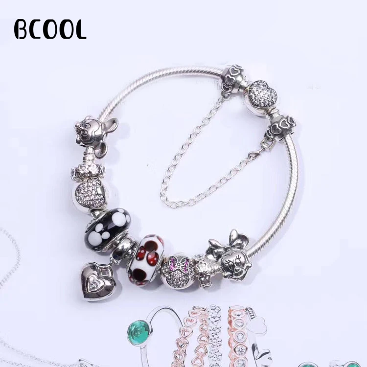 100%925 Sterling Silver Original 1:1, Love Cartoon Bracelet, Suitable For Women Crystal Beads Bracelet Jewelry Free Package