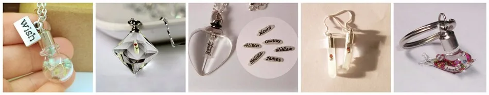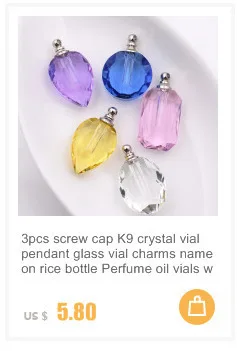 These are MINI vial pendants with a small reservoir. It has a screw on cap. You can fill it with anything you like. Use your favorite perfume, old, beads, sand, gold or silver flakes, gllitter or a secret message. The crystal pendant is less 1" tall. bottle opening is around 2mm *necklaces,bracelets,anklets,key chains or what ever you want to use it for...