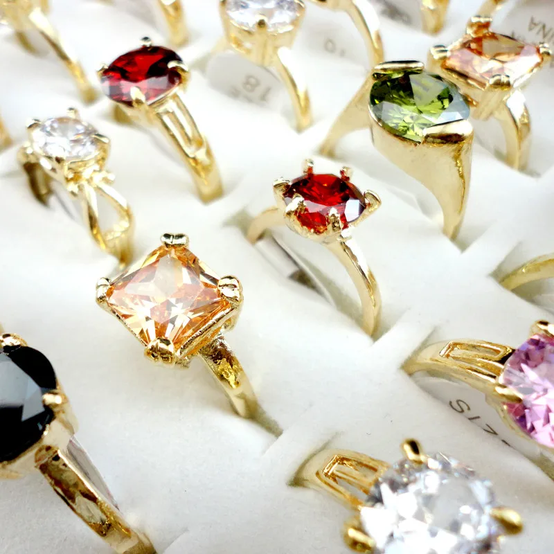 10Pcs Classic Women's Rings Multicolor Zircon Gold Engagement Rings Women Jewelry Lots LR439