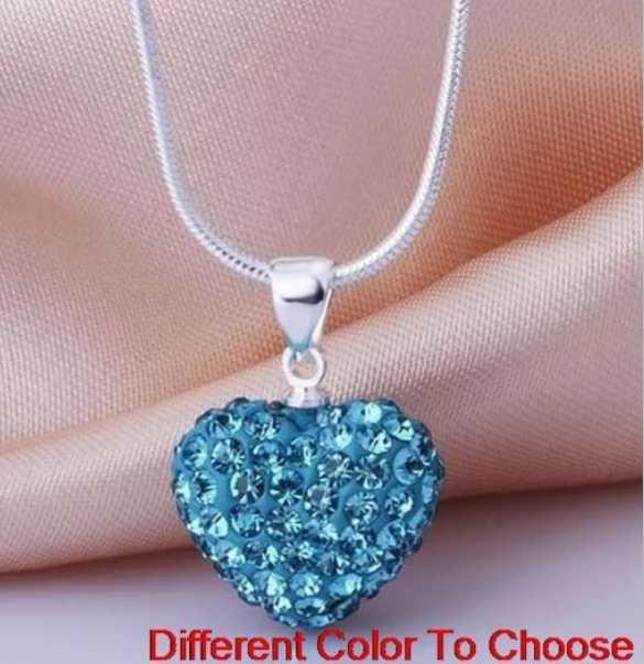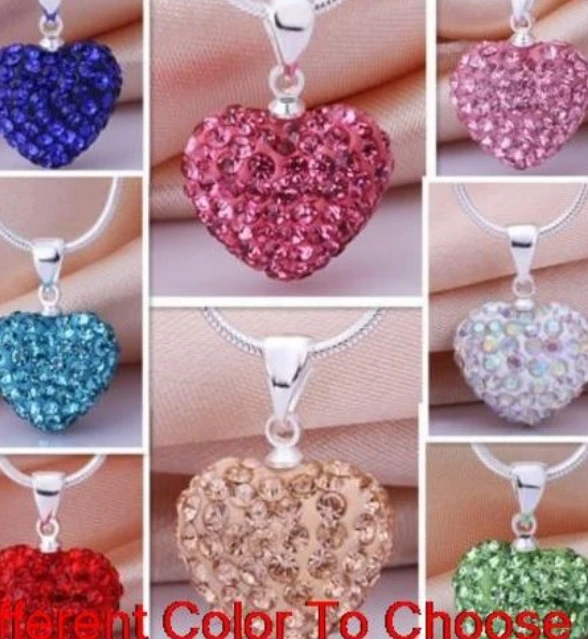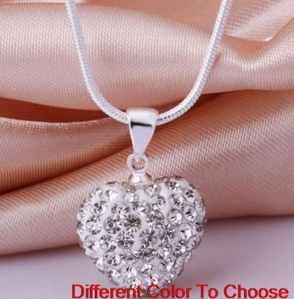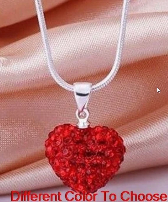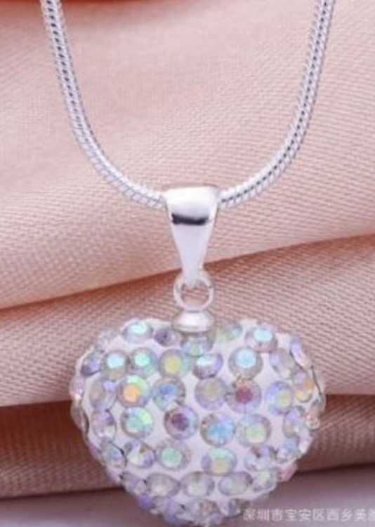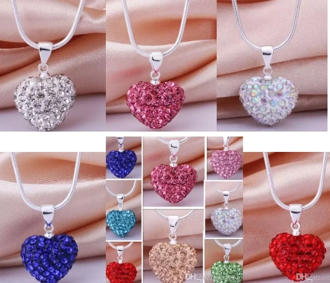 10pcs/lot 10*14mm Mix multicolor white rose silver plated snake chain heart beads crystal necklace women men gift n264