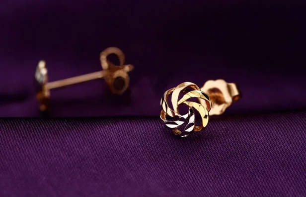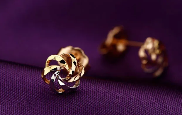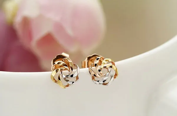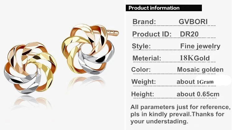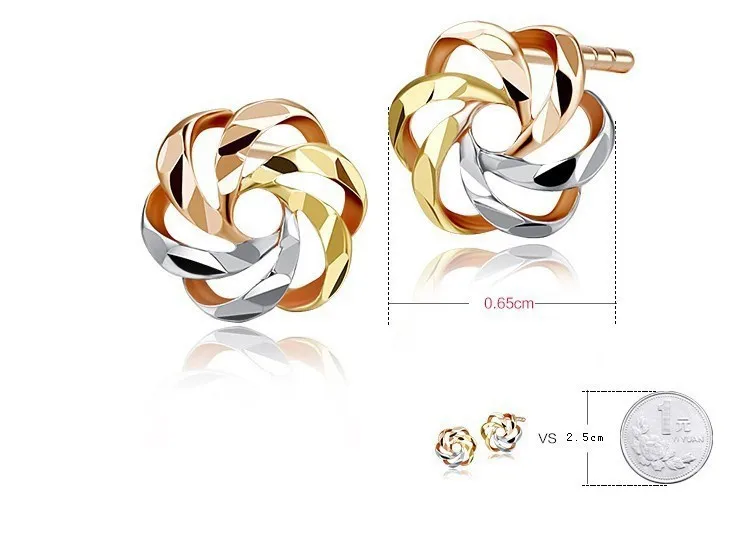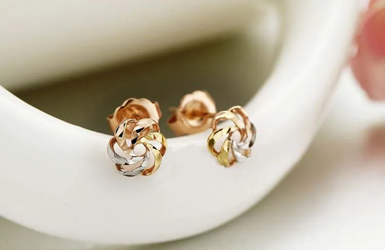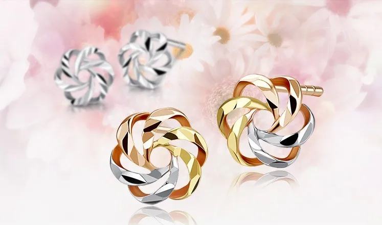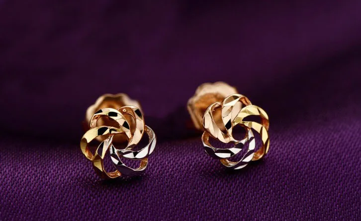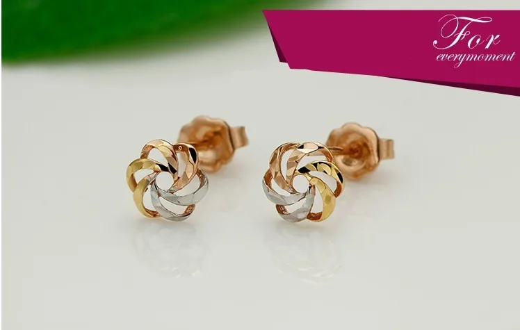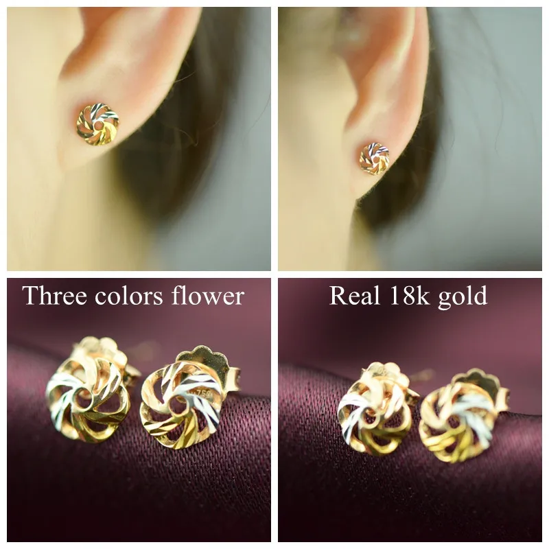 18K Solid Gold 1 Gram Lowest Price Women earrings Flower Design Free Shipping Three colors