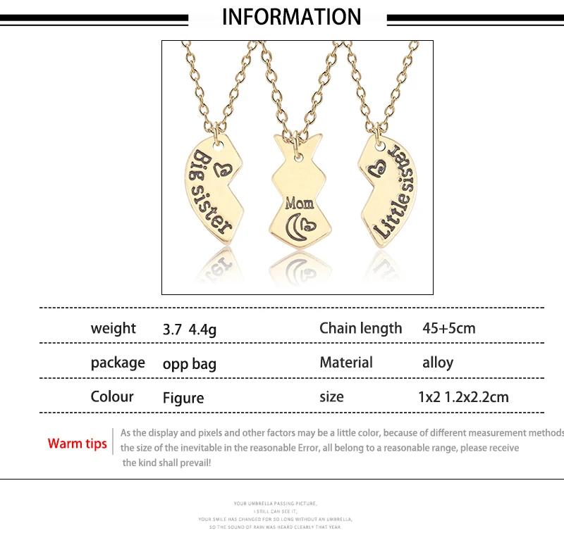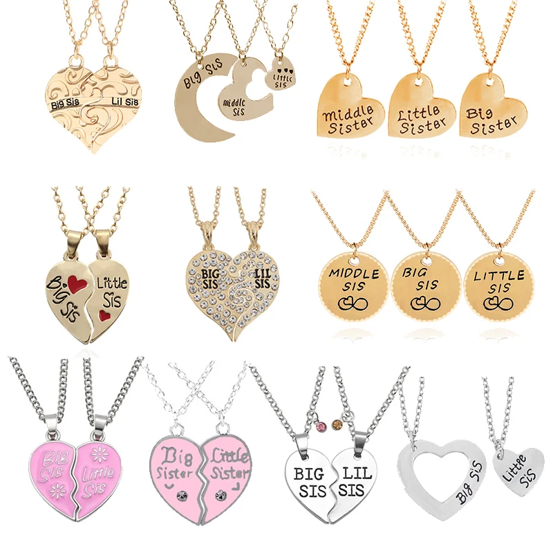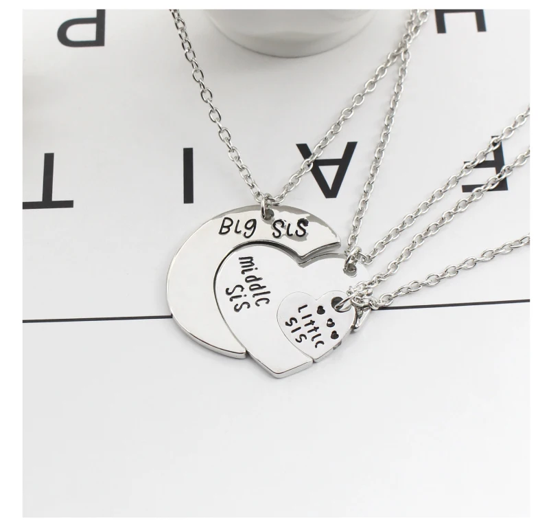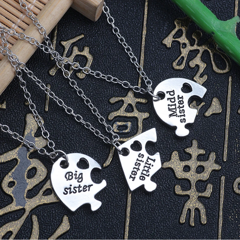 2/3 PCS Big Middle Little Sisters Pendants Necklaces Sets Puzzle Heart Necklace Statement BFF Friendship For Girls Women Gifts
