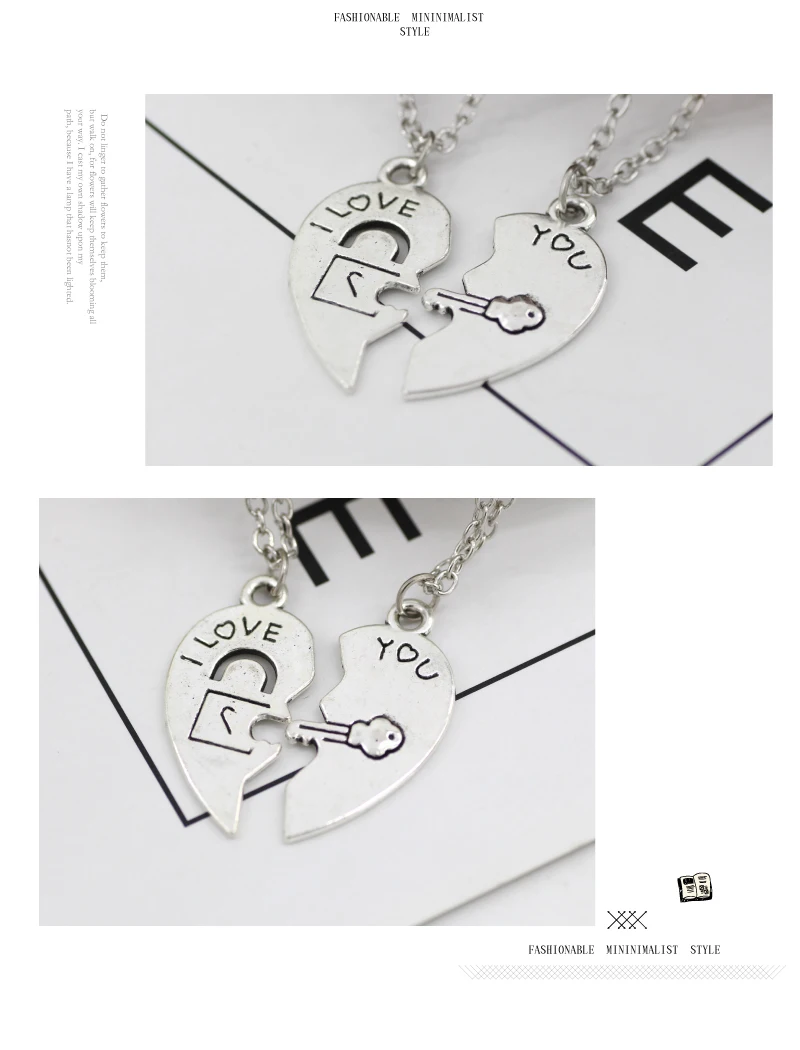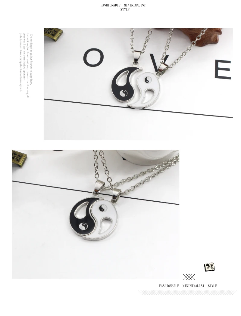 2 Pcs/Set Yin Yang Tai Chi Necklace For Couples Broken Heart Puzzle King Queen Pendant Necklaces Send Lovers Jewelry Gifts 2019