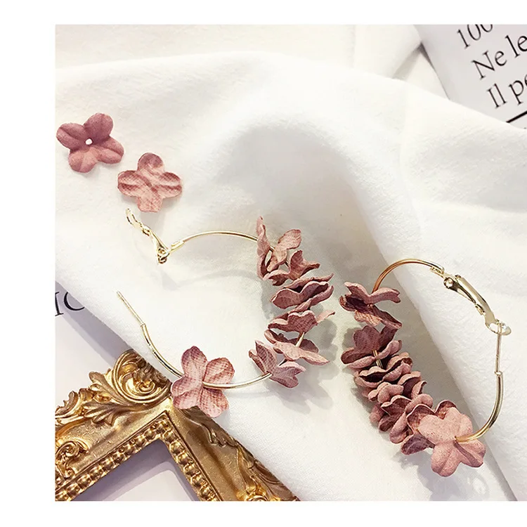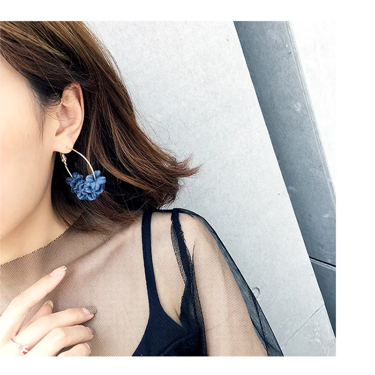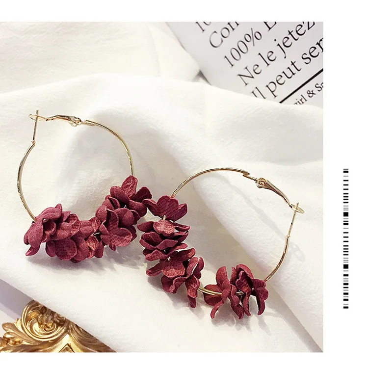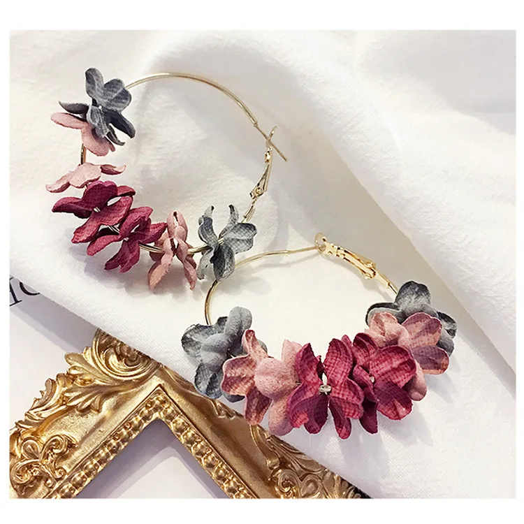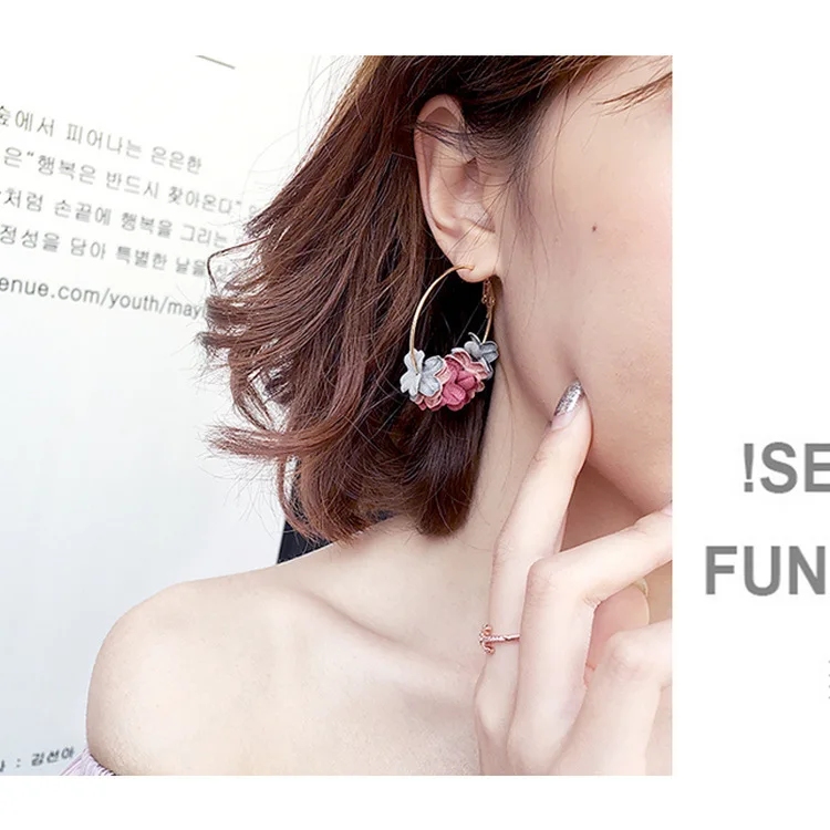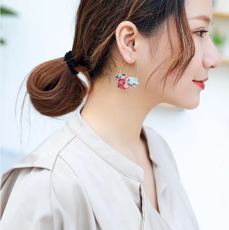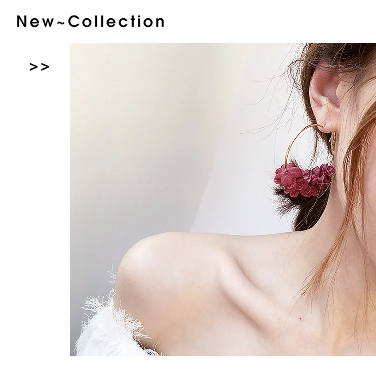 2018 Fashion Hoop Earrings For Women Bijoux Elegant Fabric Flower Petal Alloy Circle Round Earrings Charm Gold Color Brincos