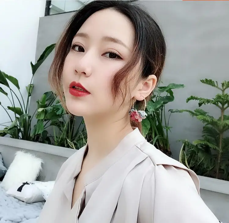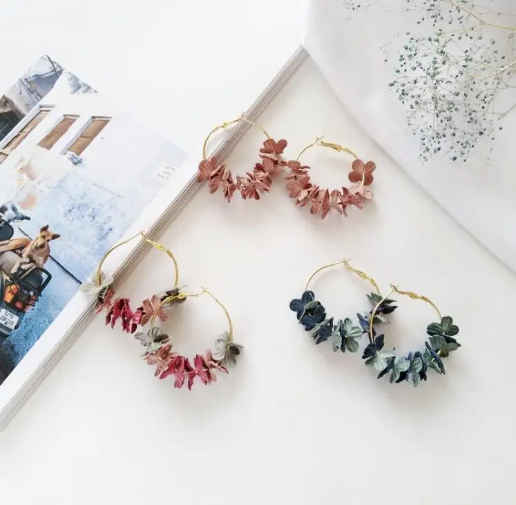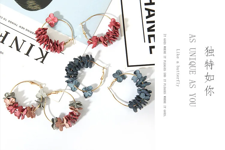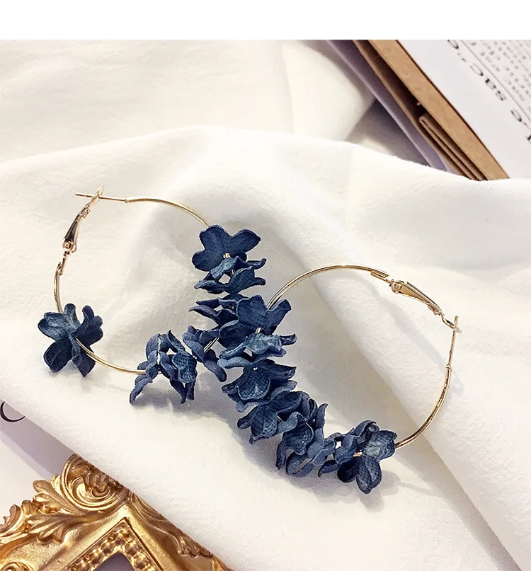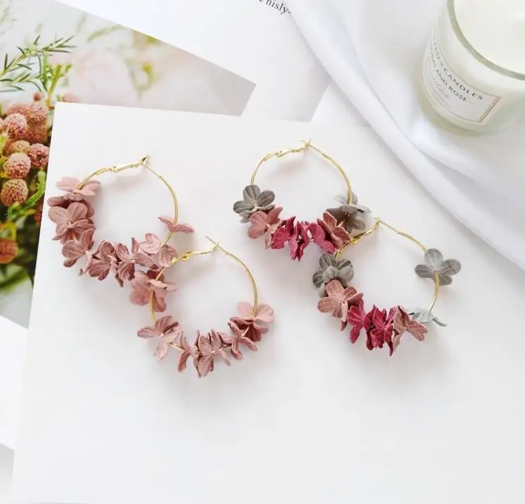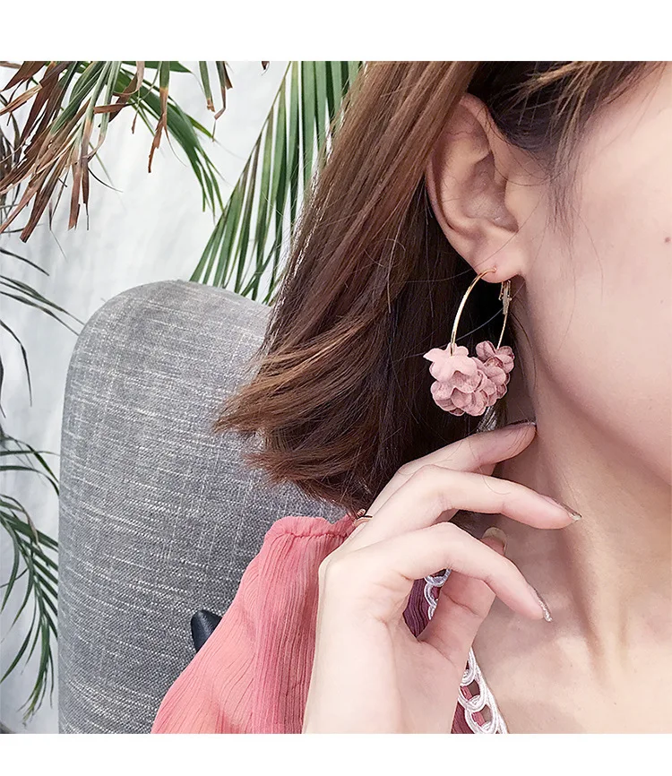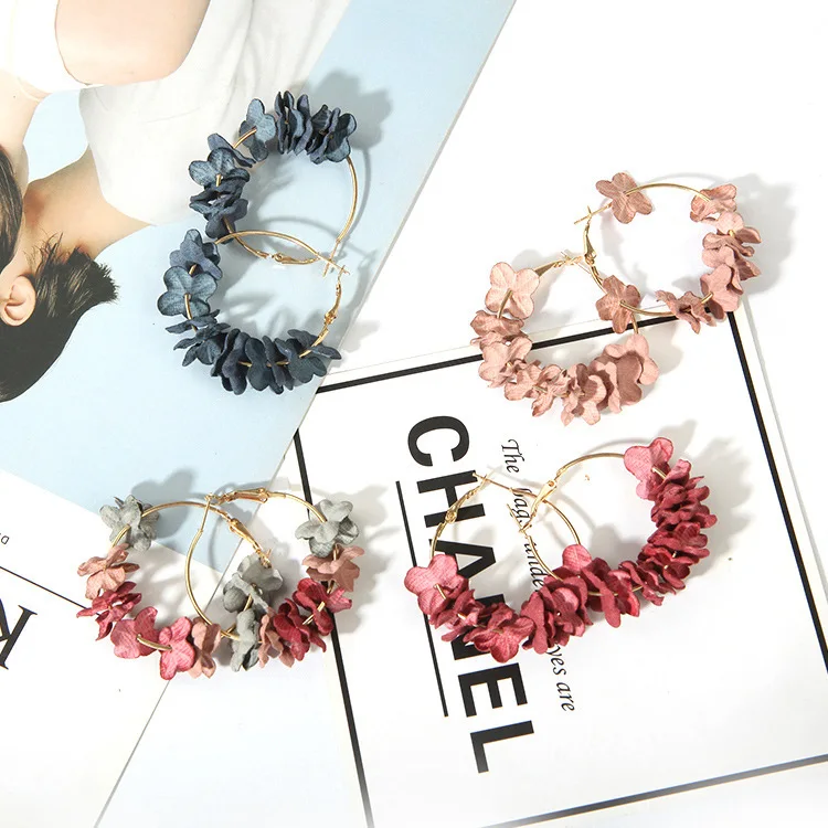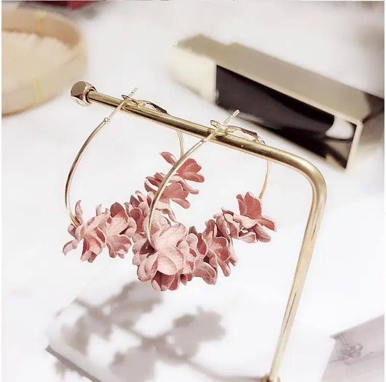 2018 Fashion Hoop Earrings For Women Bijoux Elegant Fabric Flower Petal Alloy Circle Round Earrings Charm Gold Color Brincos