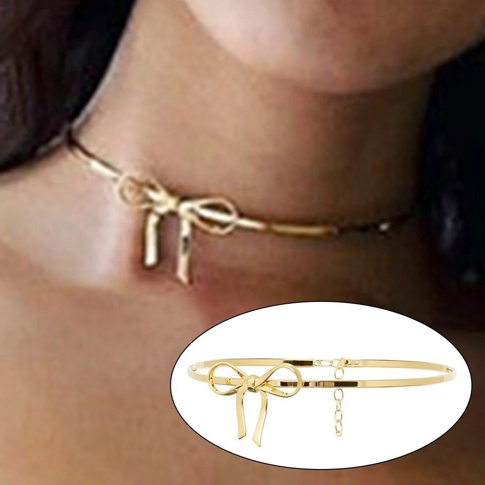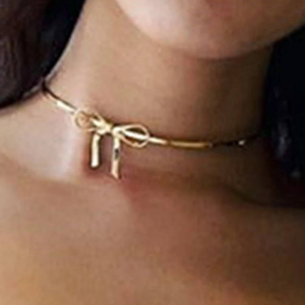 2018 New Hot Bohemian Simple Bow Choker Necklace Gold Color Clavicle Neck Chain For Women