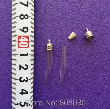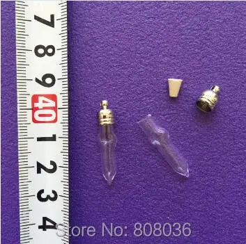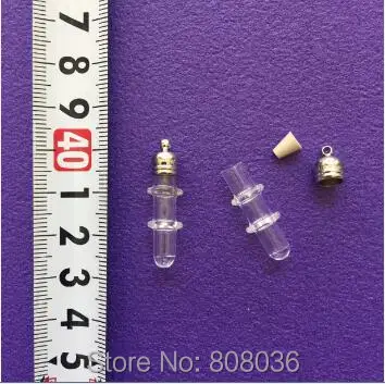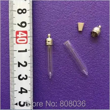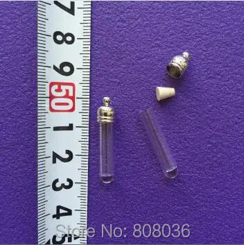 20pcss/lot tube shape glass bottle Vial Pendant with metal cap with rubber plug DIY glass locket necklace pendant jewelry charms