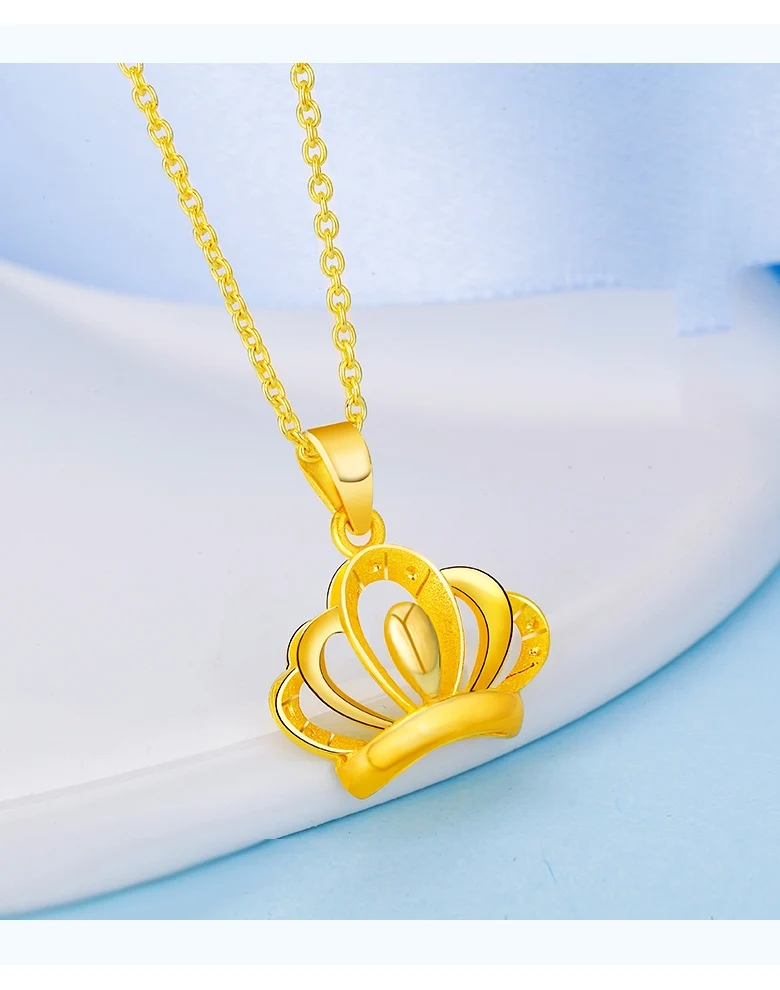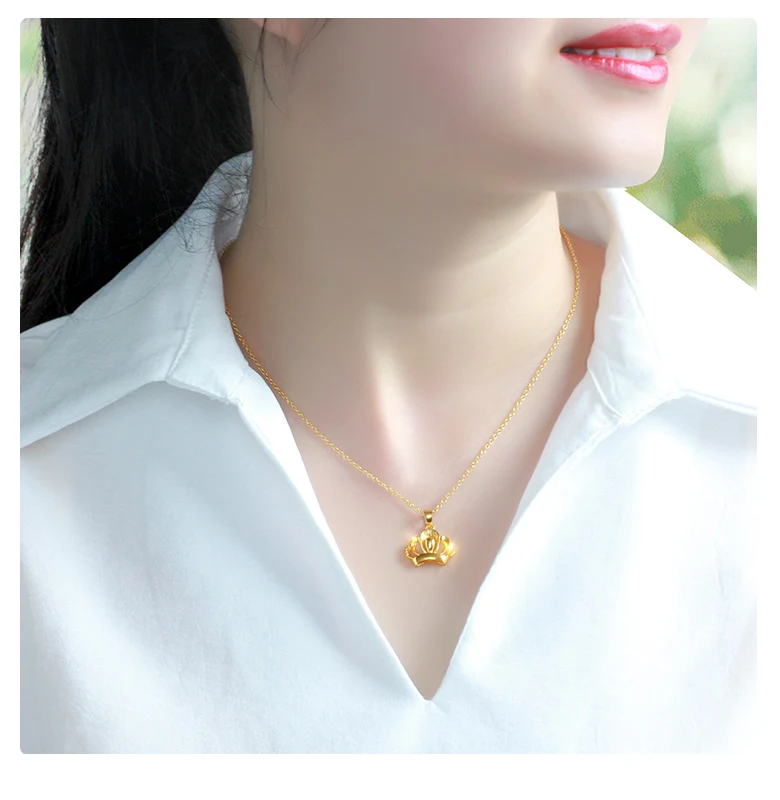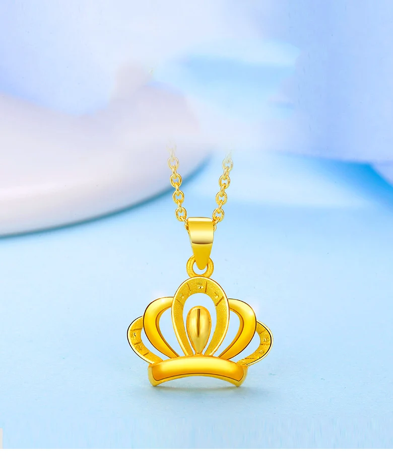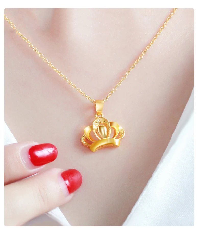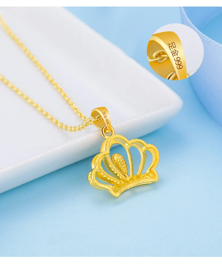 24K Pure Gold Pendant Real AU 999 Solid Gold Charm Beautiful Crown Upscale Trendy Classic Party Fine Jewelry Hot Sell New 2018
