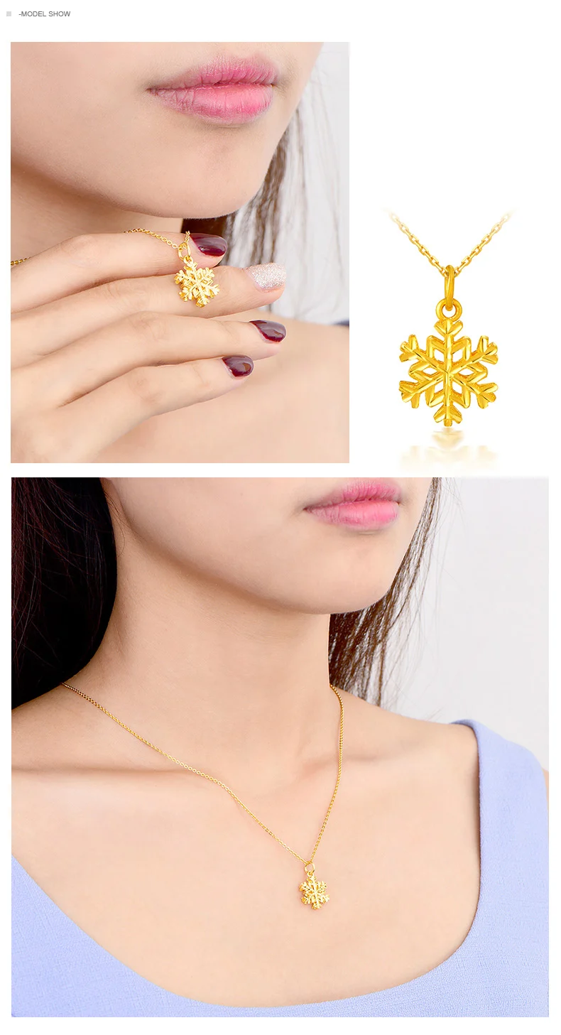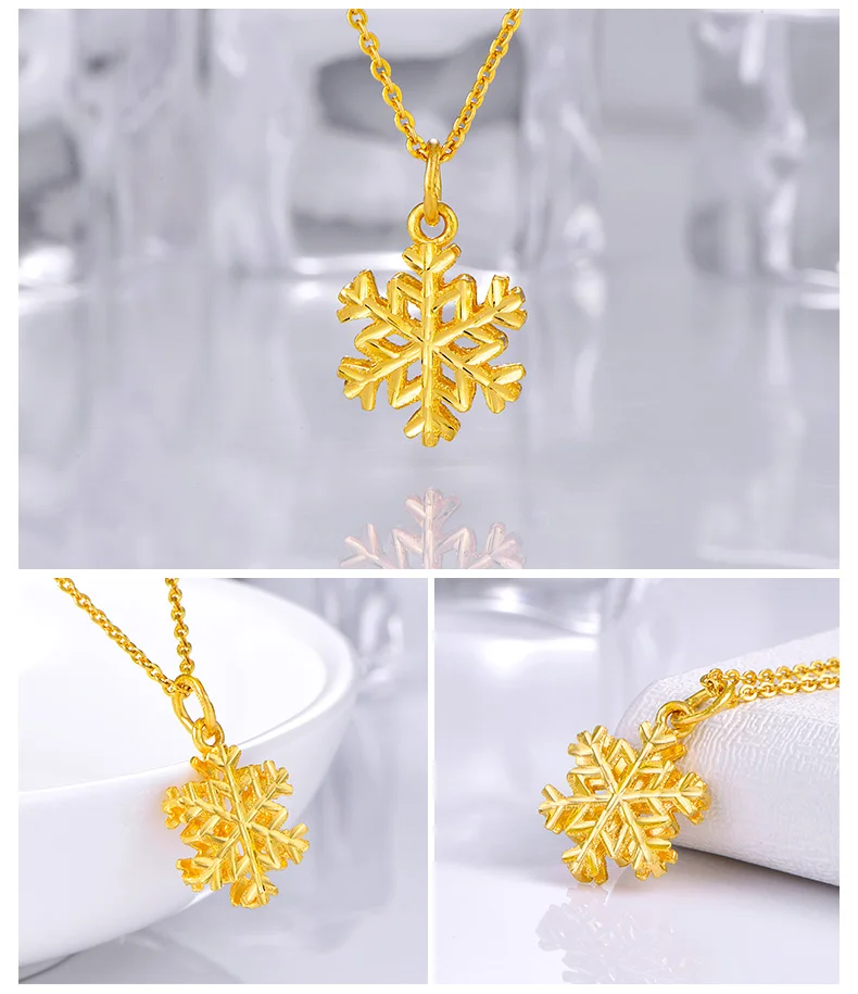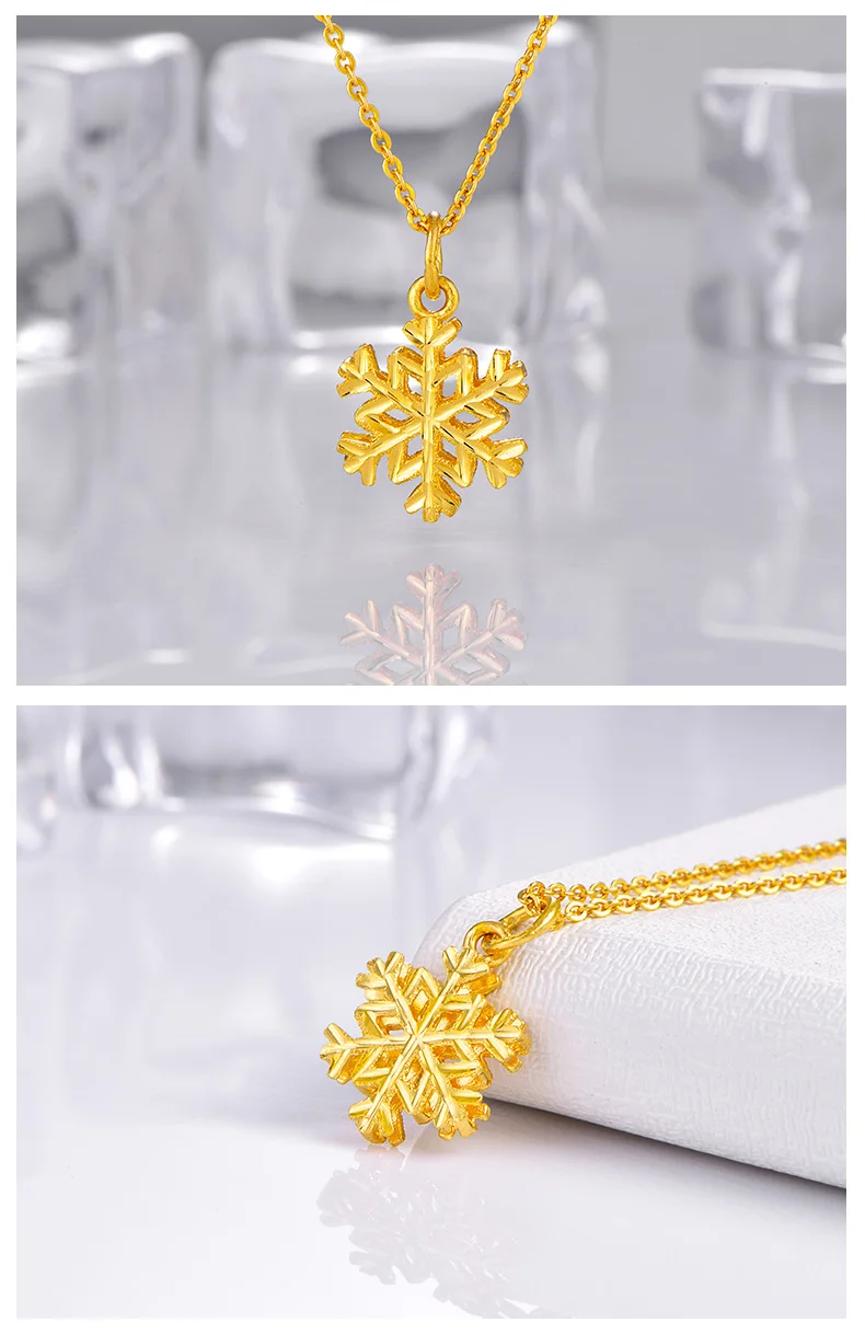 24K Pure Gold Pendant Real AU 999 Solid Gold Charm Nice Trendy Snowflake Upscale Classic Party Fine Jewelry Hot Sell New 2018