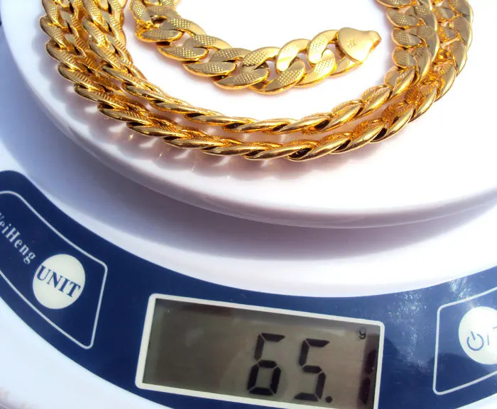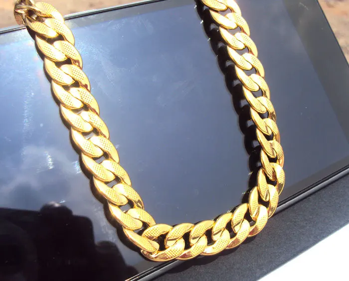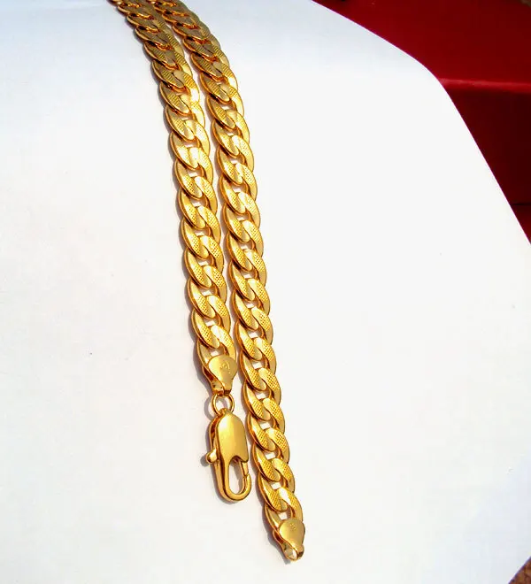24K Solid Gold GF real two-sided sequence sand Cuban Link Chain Necklace 23.6inch Not satisfied, 7 days no reason to refund