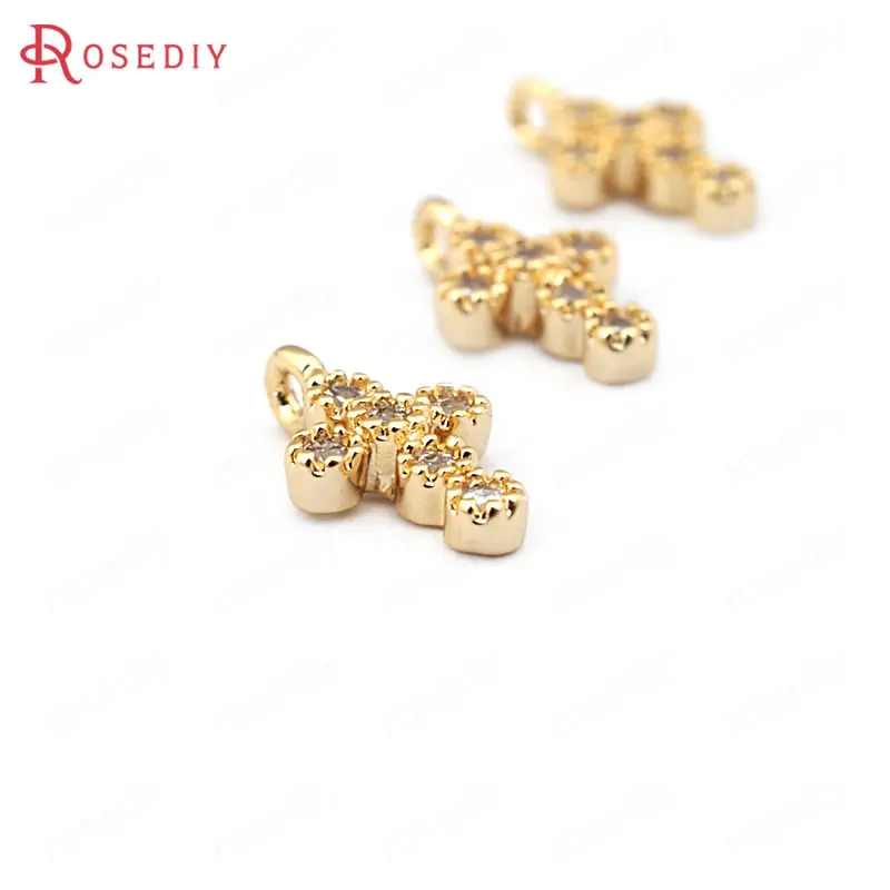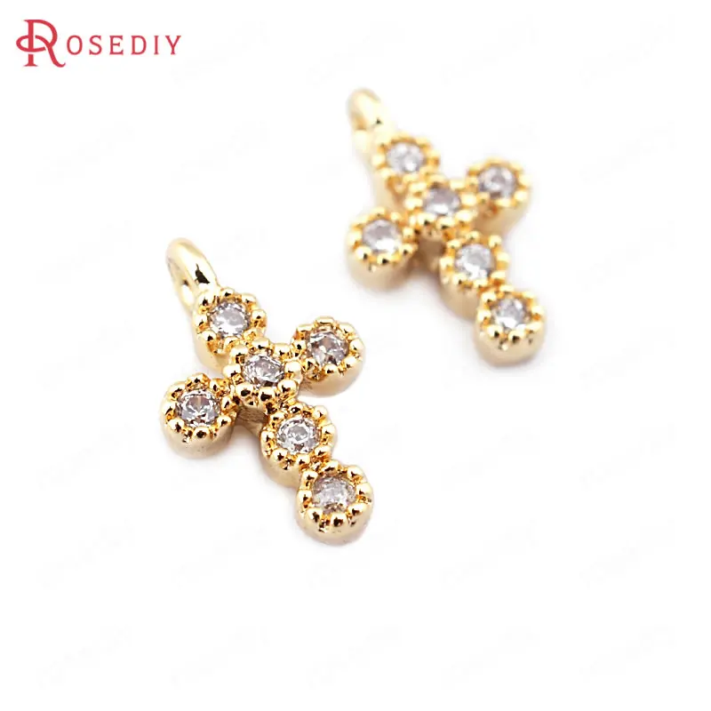 (33687)6PCS 10*6MM 24K Gold Color Brass with Zircon Small Cross Charms Pendants High Quality Diy Jewelry Findings Accessories