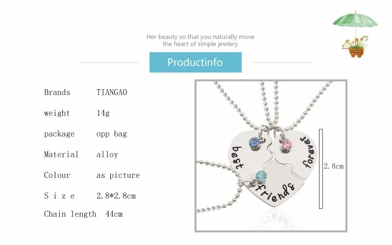 3Pcs/Set Letters Best Friends Forever Friendship Necklace Undertale 3 Colors Rhinestone BFF Friendship Necklaces & Pendants