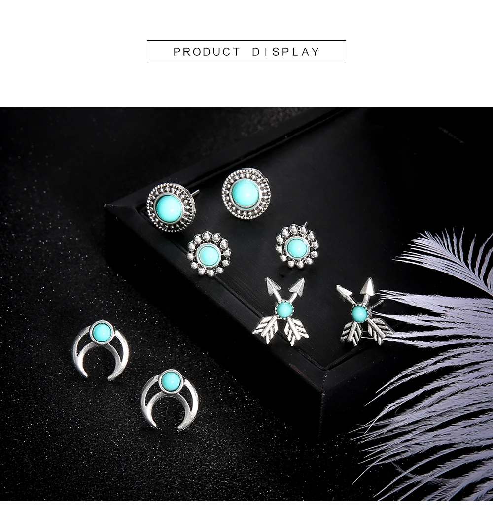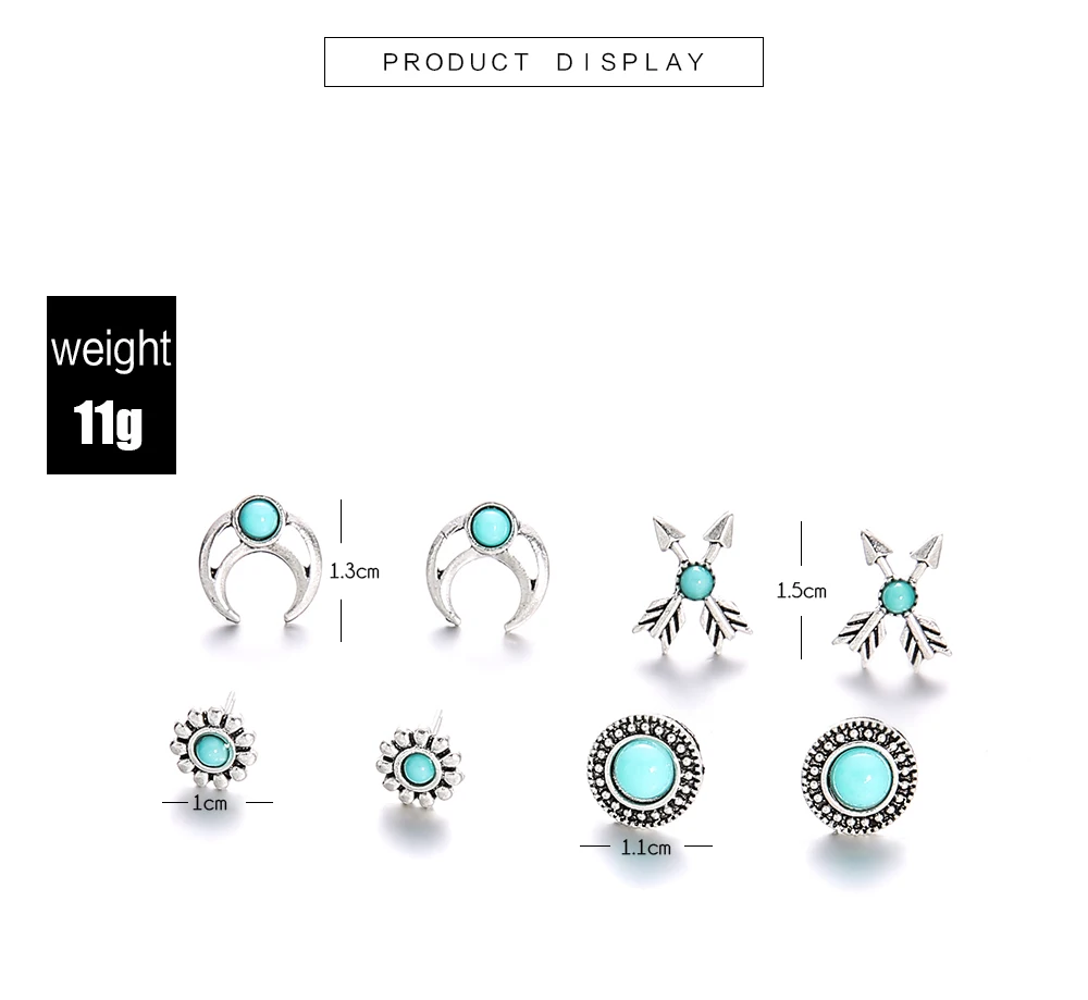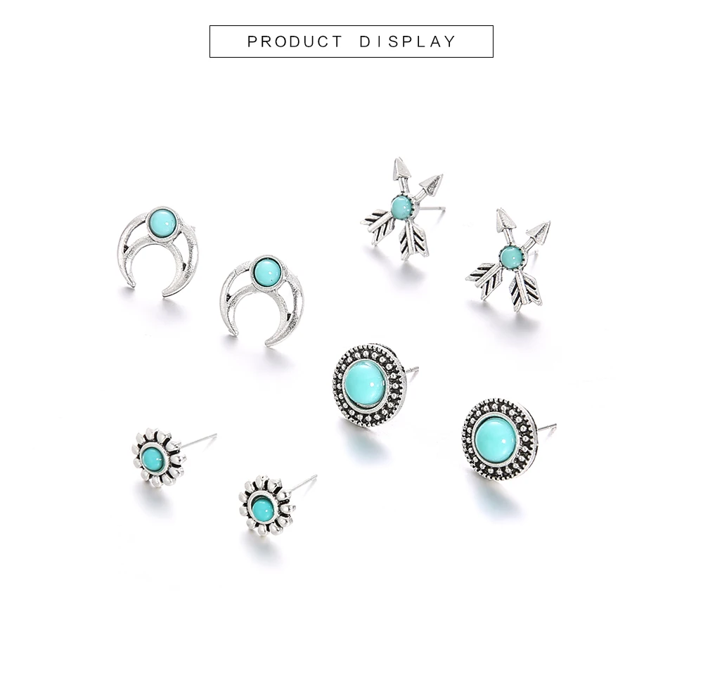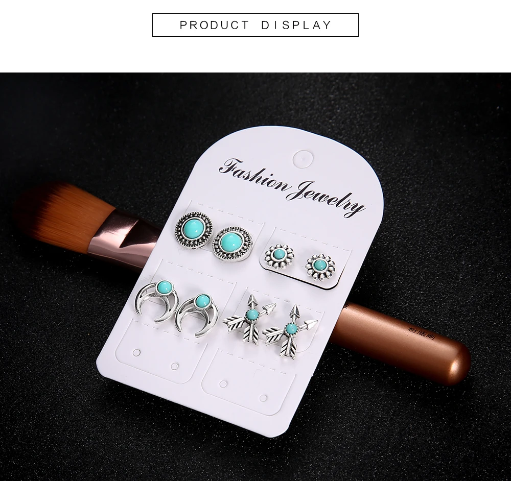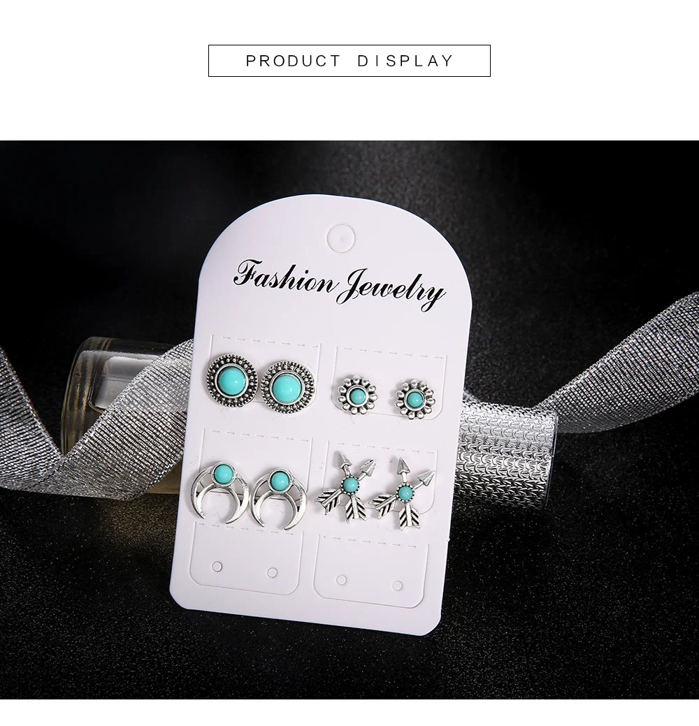 4 Pairs/Set Natural Stone Bohemian Stud Earrings for Women Boho Boucle D'oreille Jewelry Dazzling Cubic Zirconia Brincos 2019