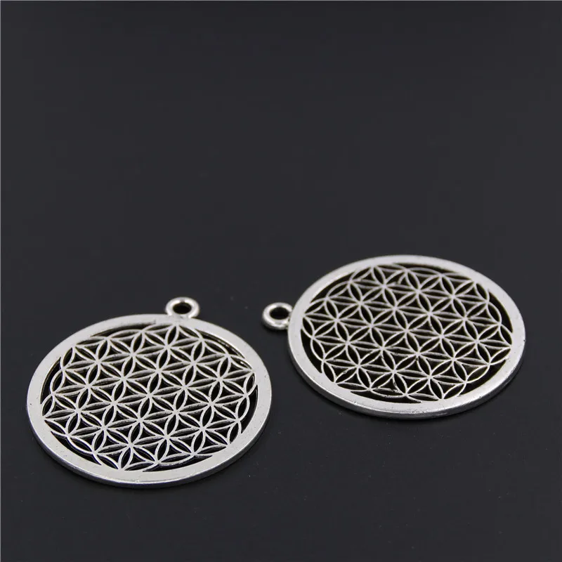 5pcs Antique Silver Flower of life Circle Shaped Seed of Life Sacred Geometry Craft DIY Findings