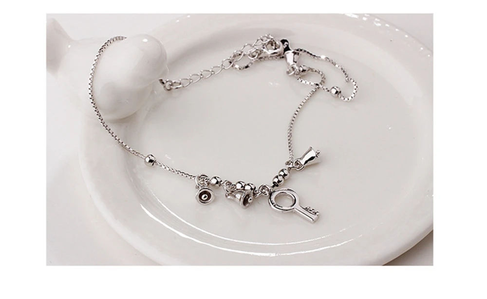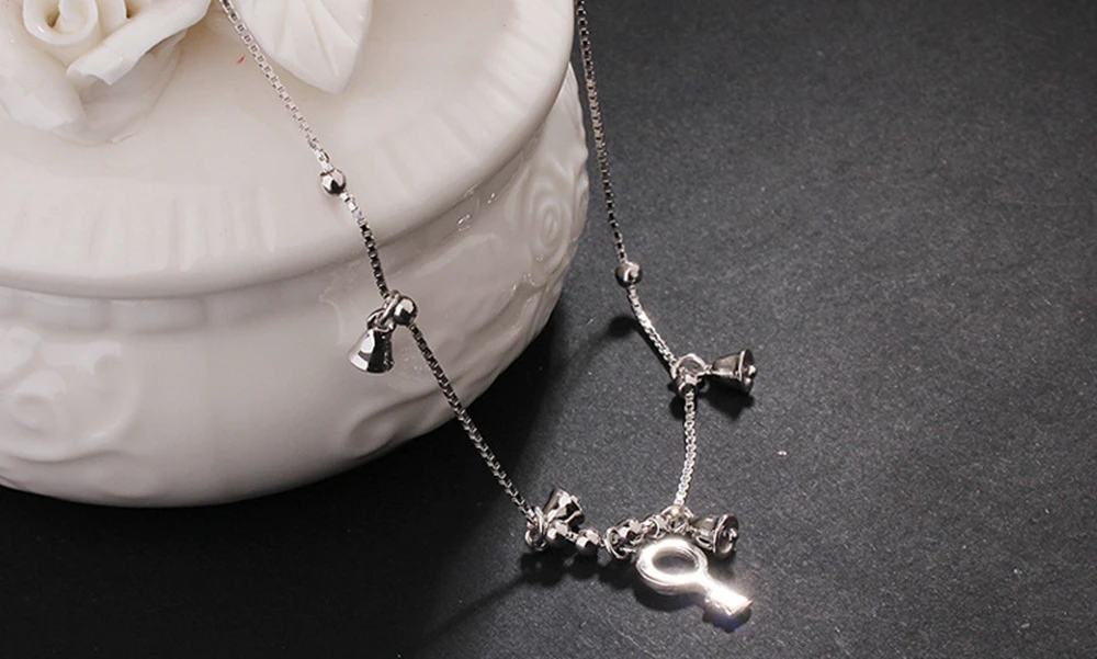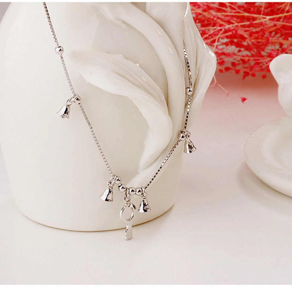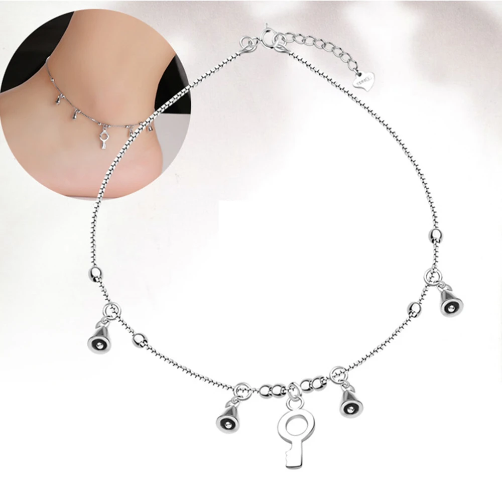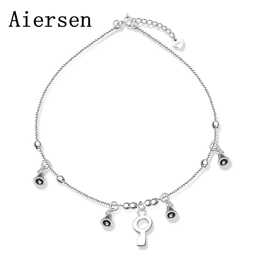 Aiersen Key Bell Pure Silver S925 Chain Anckle Women Handmade Leg Bracelet Trendy Anklets Fine Jewelry Tobillera Plata 925