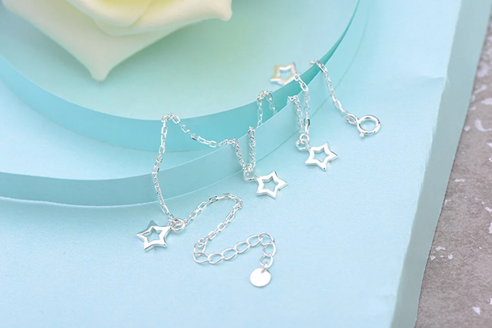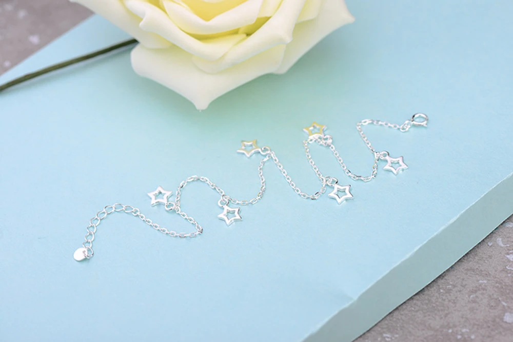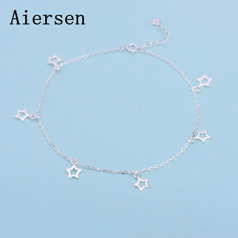 Aiersen Women Anklet Pentagram S925 Silver Handmade Five-pointed Star Leg Bracelet Girl Fashion Anklets Tobillera Plata 925