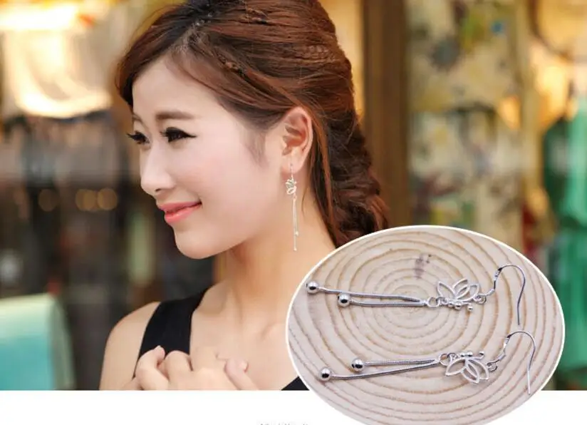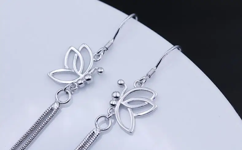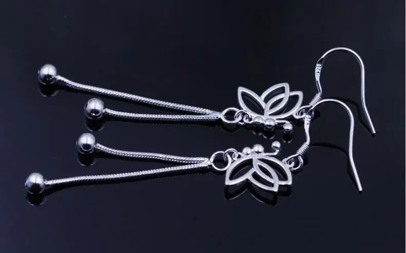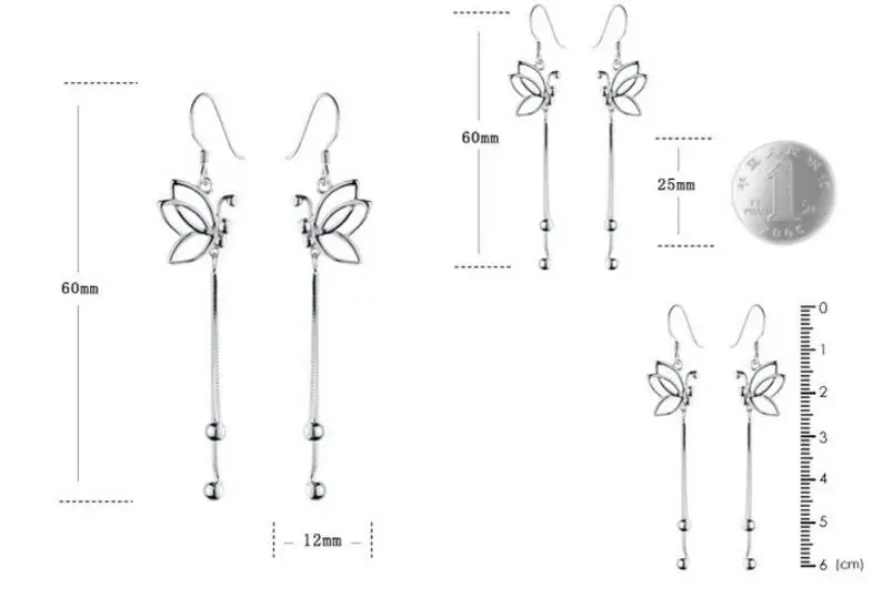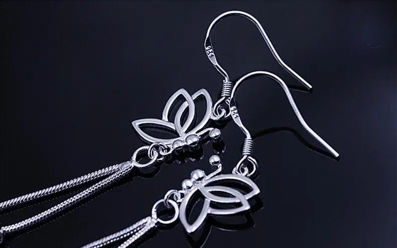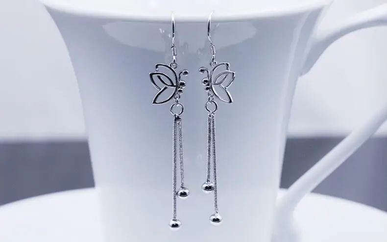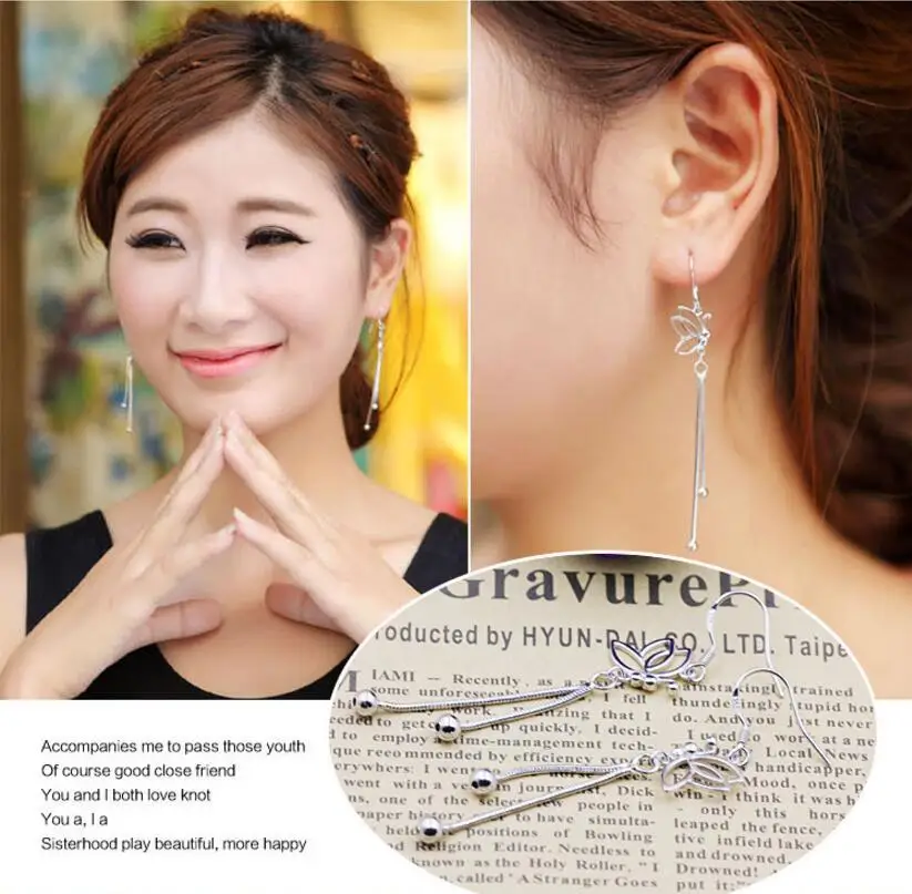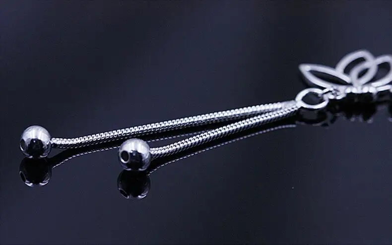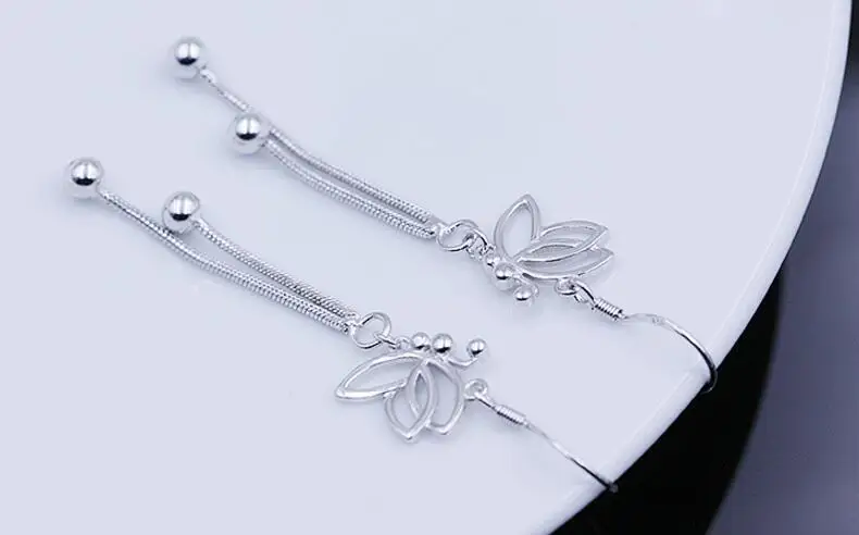 Anenjery 925 Sterling Silver Butterfly Long Tassel Beads Drop Earrings For Women Boucle d'oreille oorbellen S-E65