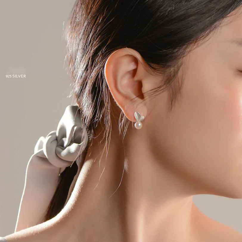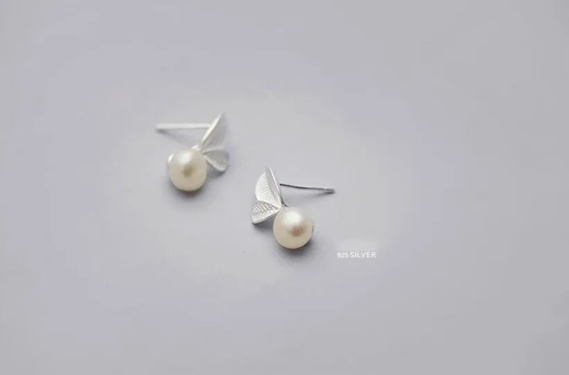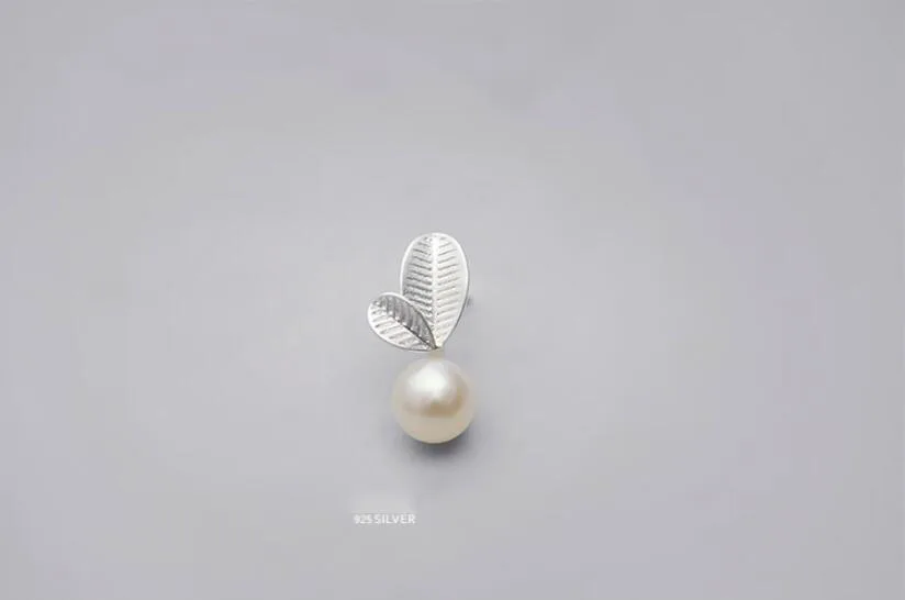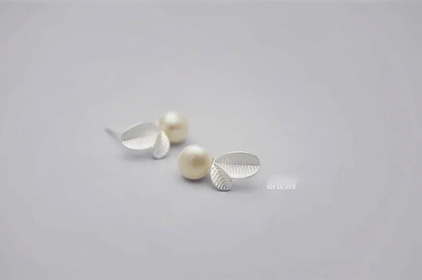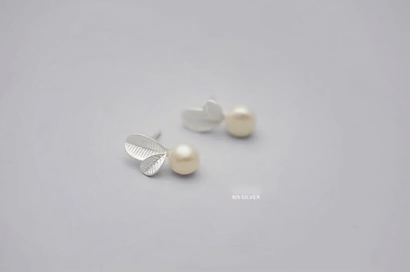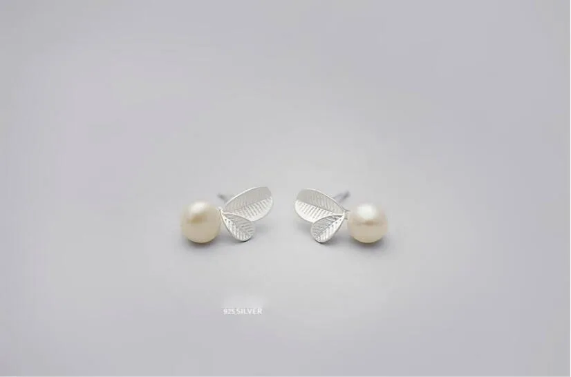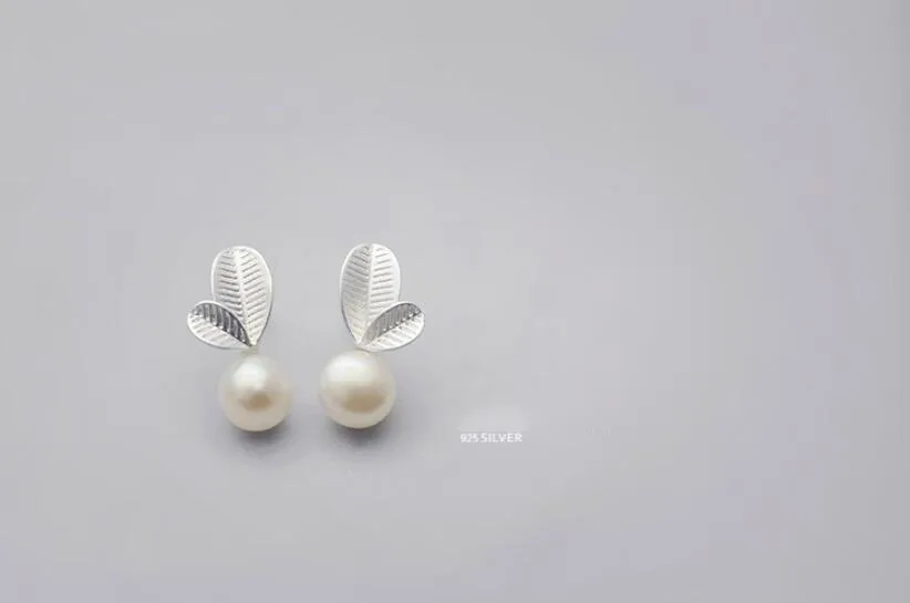 Anenjery 925 Sterling Silver Earrings For Women Girl Bud Leaf Simulated Pearl Stud Earrings oorbellen pendientes S-E564