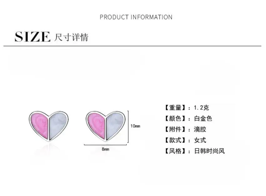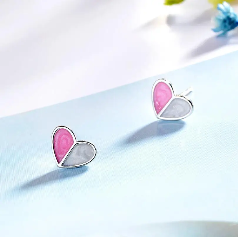 Anenjery 925 Sterling Silver Earrings For Women Ice Cream Heart Stud Earrings For Women Girl Best Friend Gift brincos S-E569