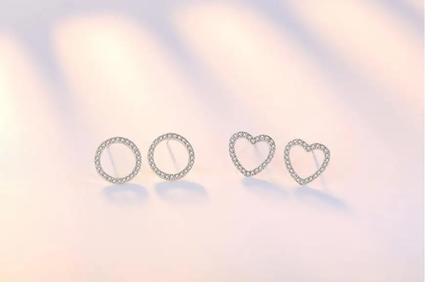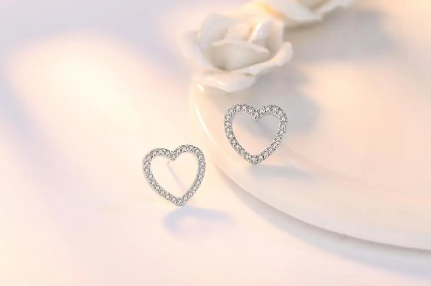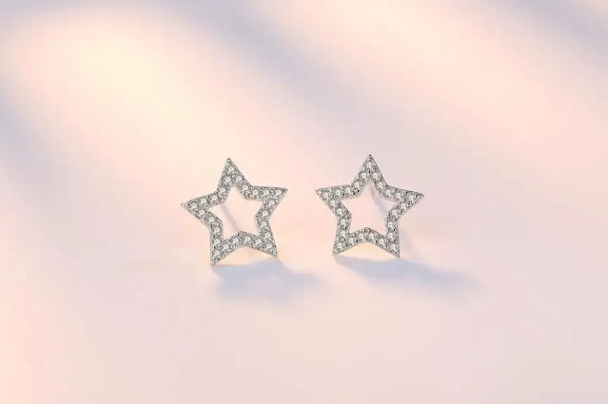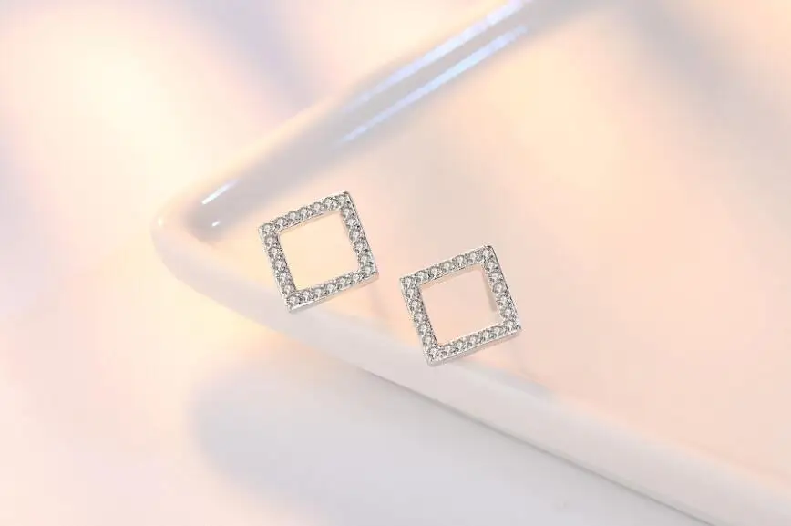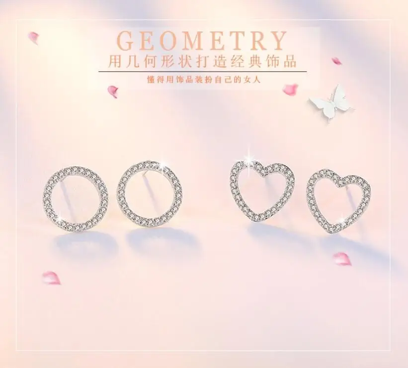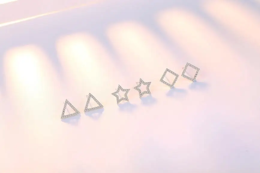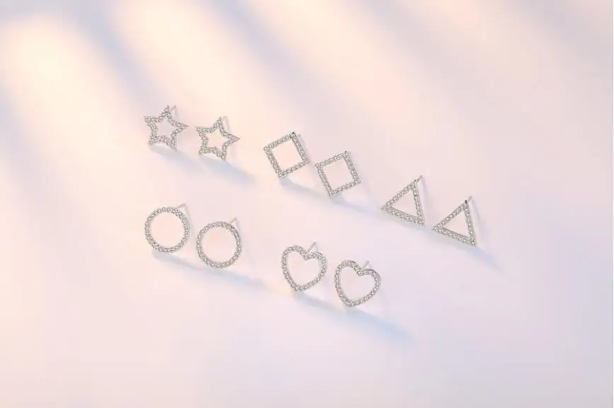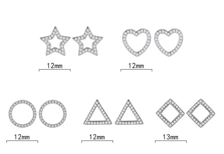 Anenjery 925 Sterling Silver Geometric Star Heart Square Mosaic Zircon Stud Earrings For Women Silver 925 Jewelry S-E539