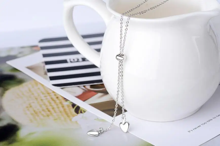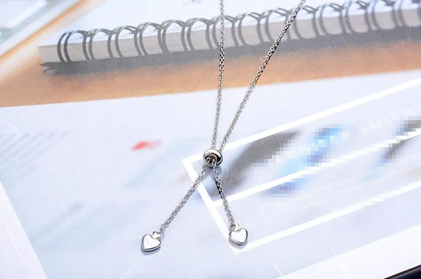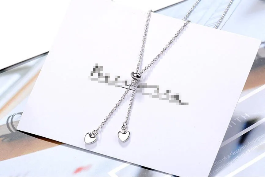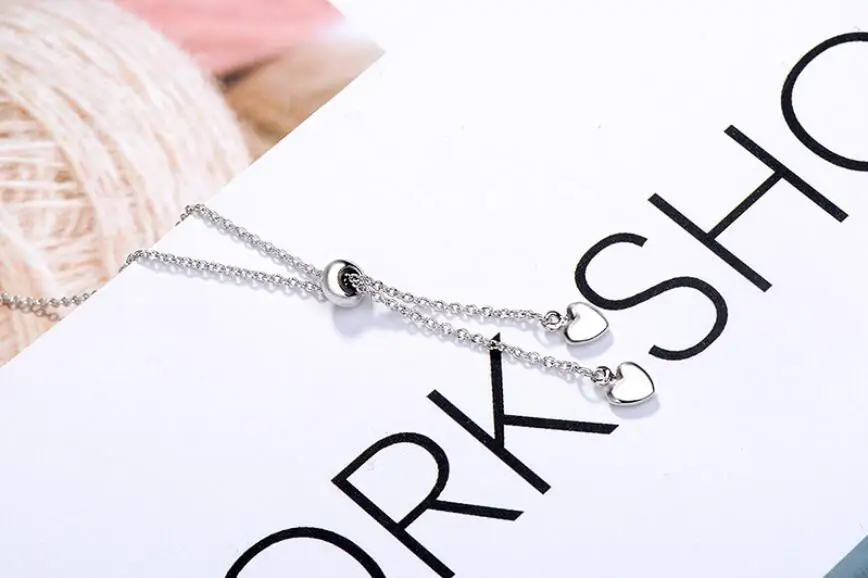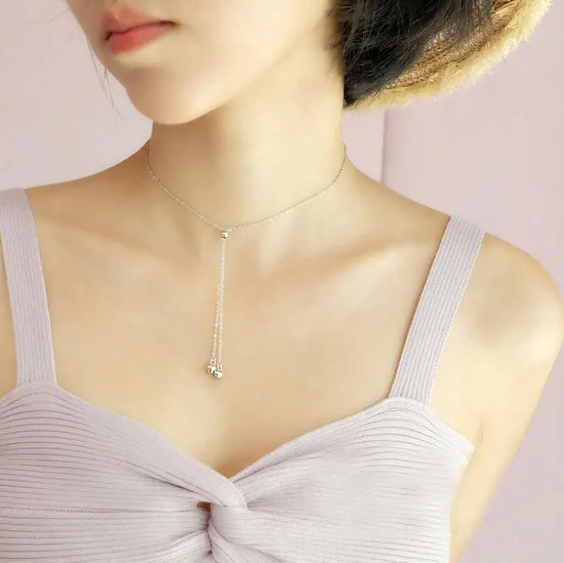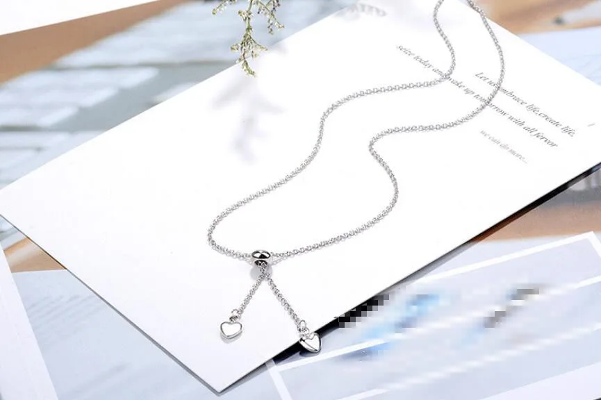 Anenjery 925 Sterling Silver Love Heart Round Bead Tassel Adjustable Pendant Necklace For Women Choker Collar S-N114
