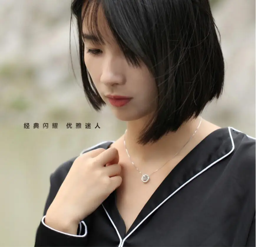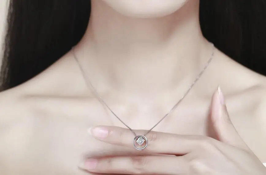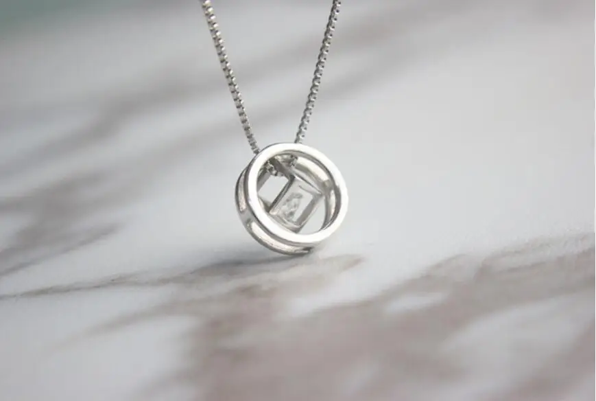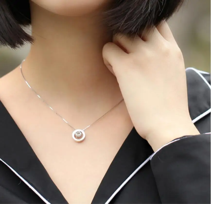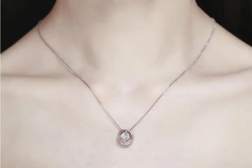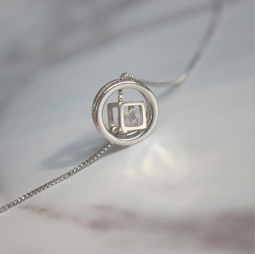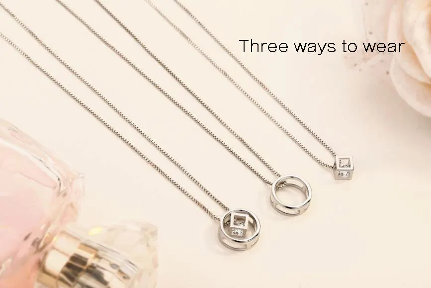 Anenjery 925 Sterling Silver Necklace Crystal Cube Circle Clavicle Necklace For Women 3 Ways To Wear Choker Collar kolye S-N219