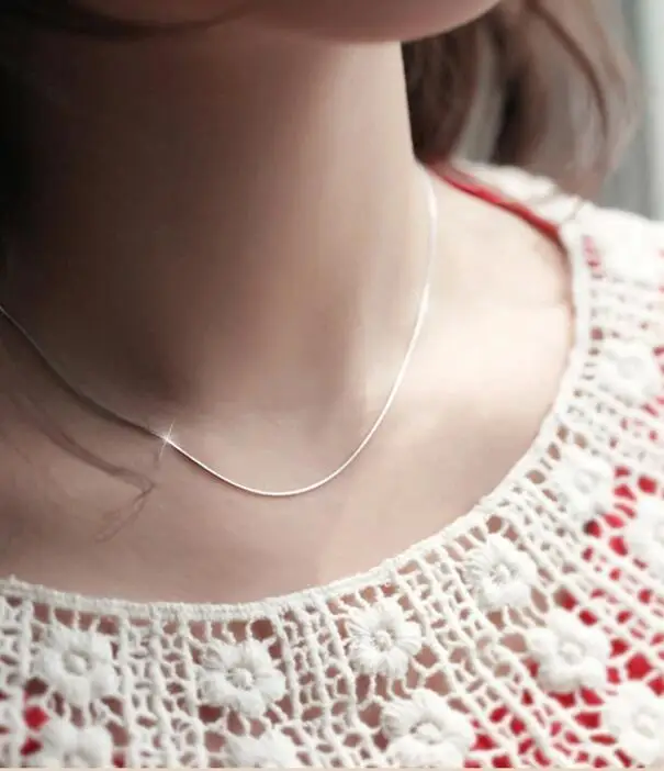 Anenjery 925 Sterling Silver Snake Chain Necklace Use for Pendants Charms Women colar S-N34 (Diameter 1.2mm)
