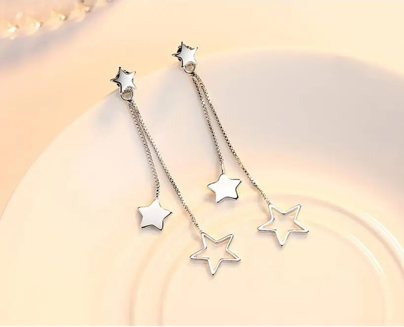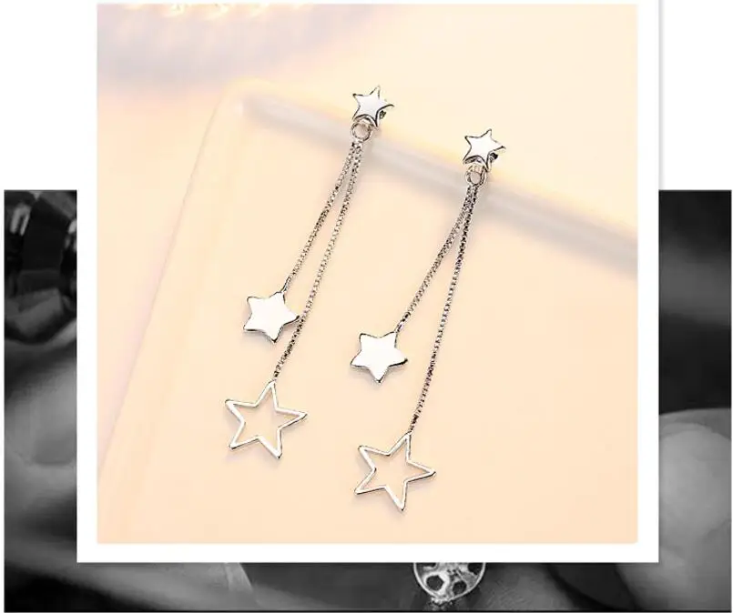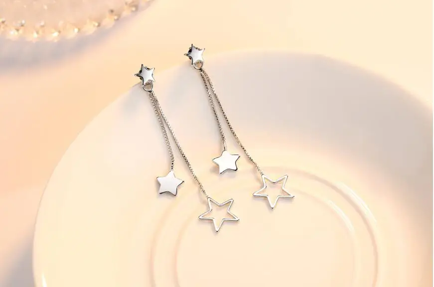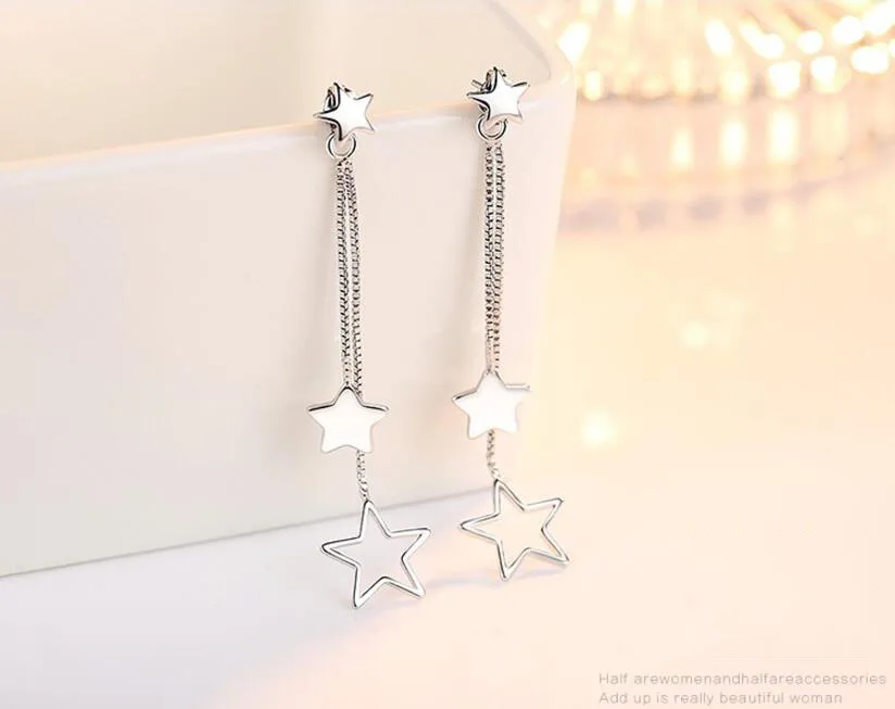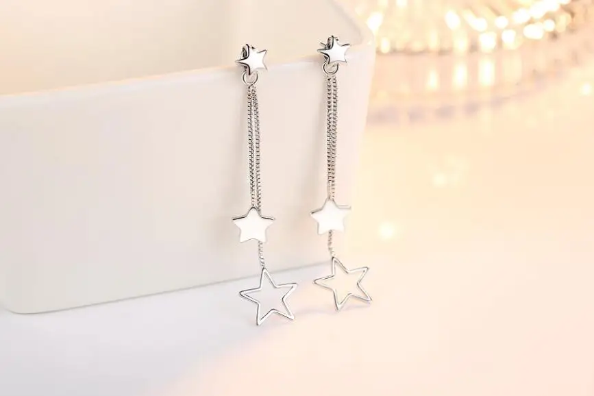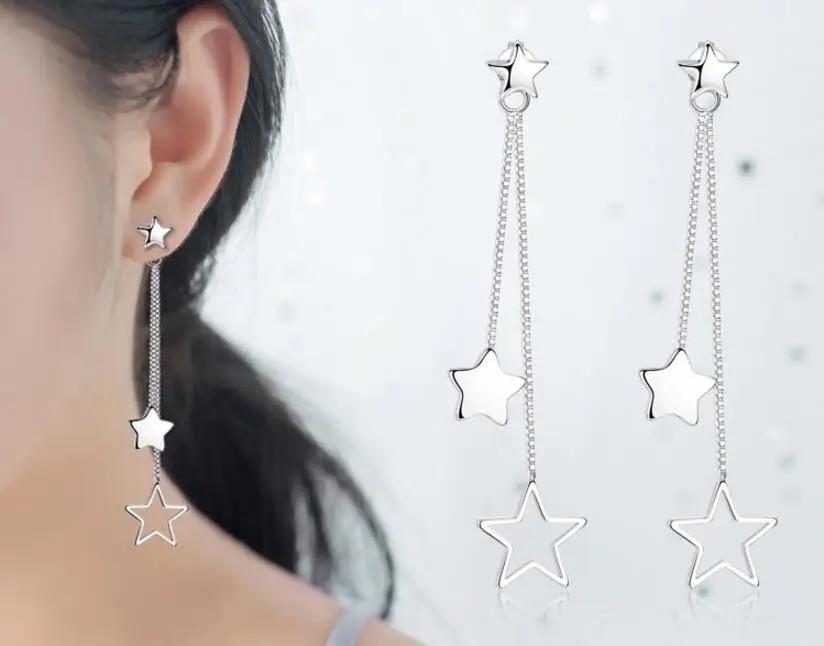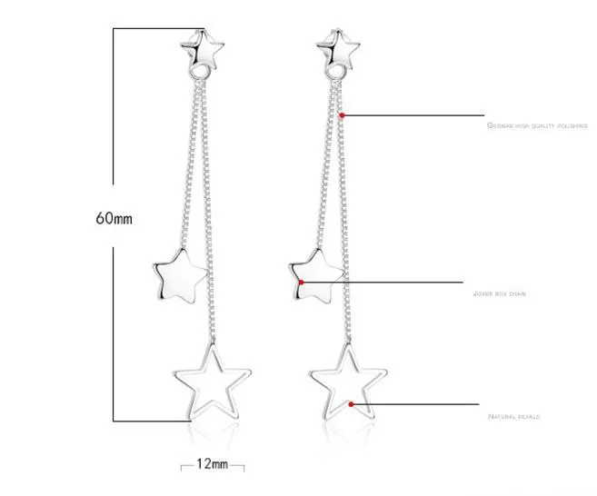 Anenjery 925 Sterling Silver Stud Earrings pendientes 3 Star Tassel Earrings For Women oorbellen boucle d'oreille femme S-E316