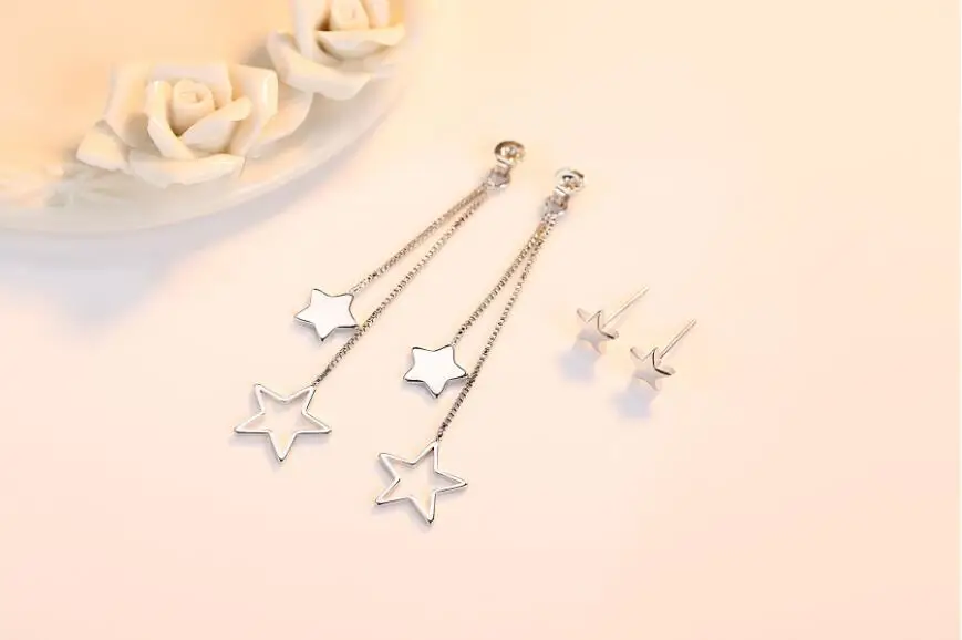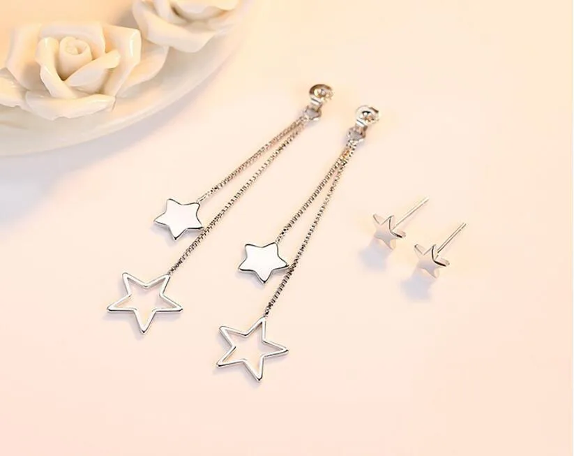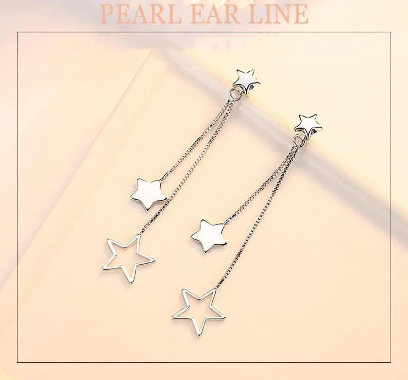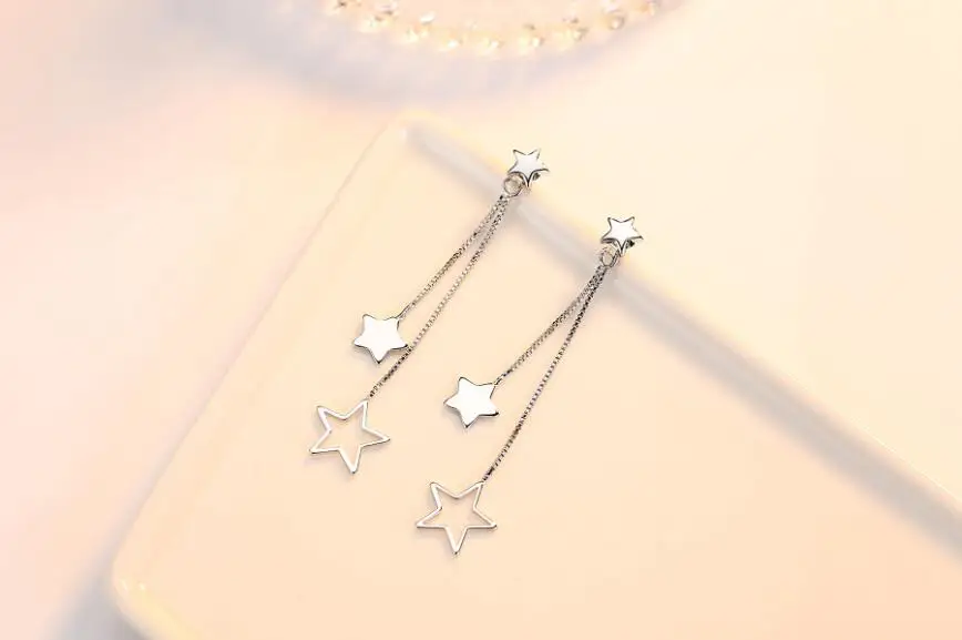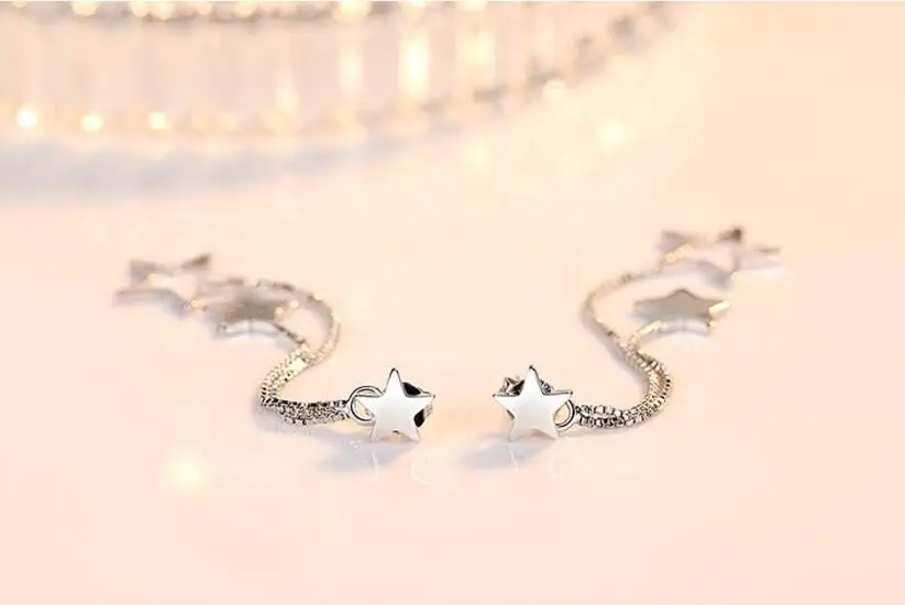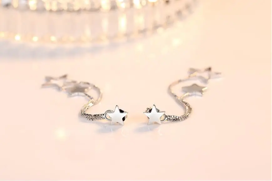 Anenjery 925 Sterling Silver Stud Earrings pendientes 3 Star Tassel Earrings For Women oorbellen boucle d'oreille femme S-E316
