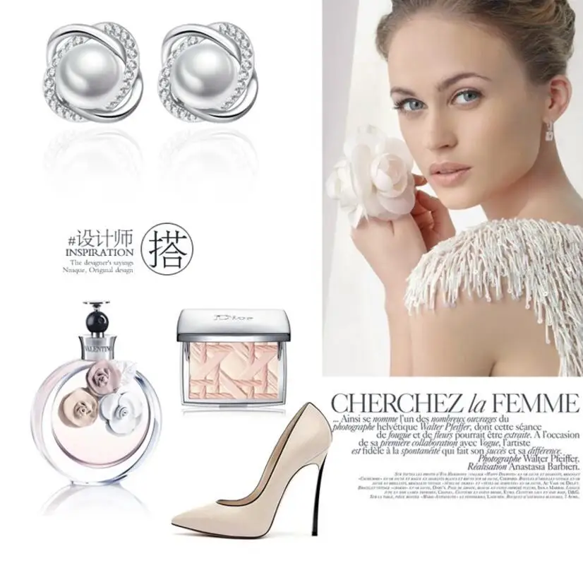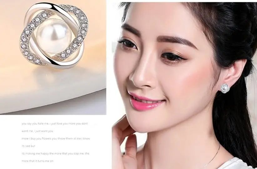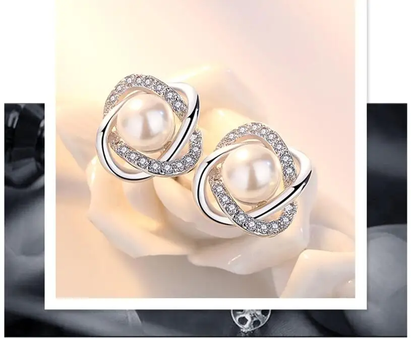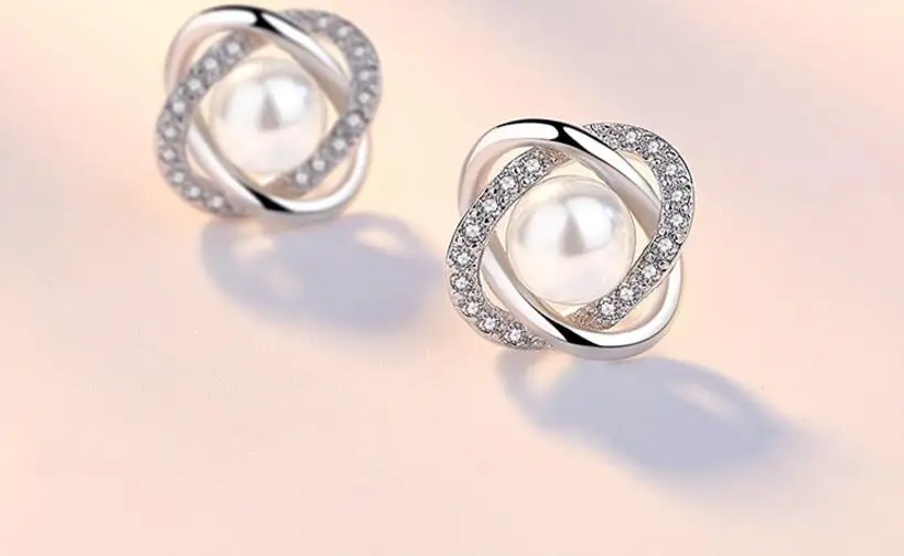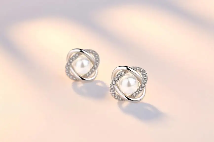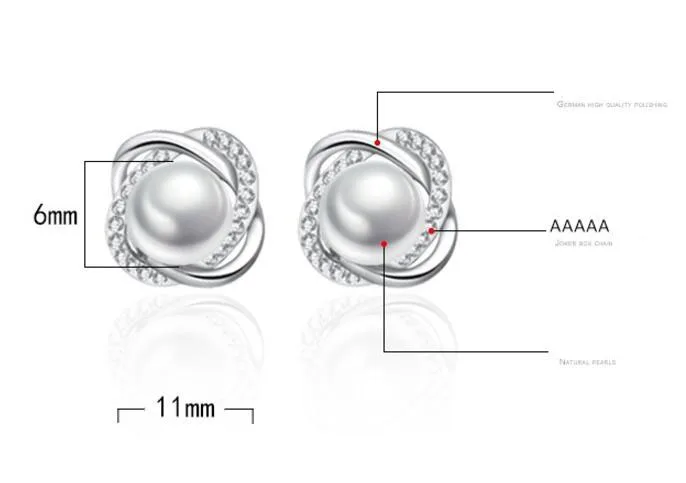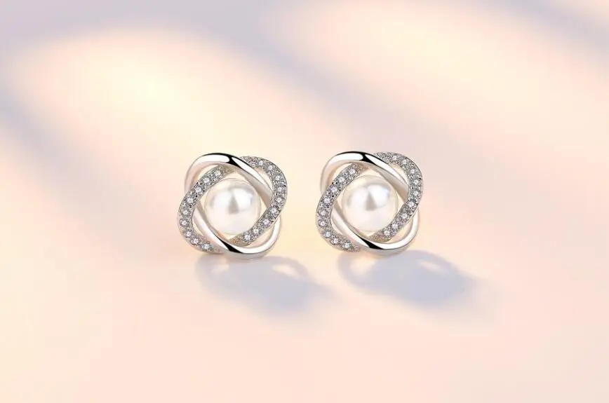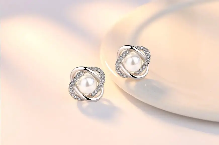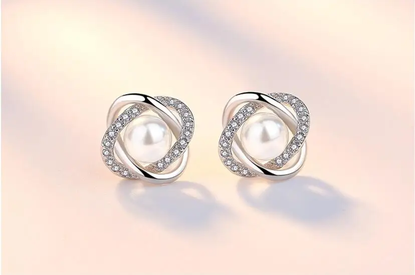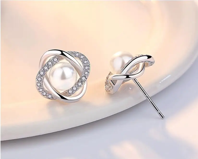 Anenjery Upscale 925 Sterling Silver Earrings Zircon Pearl Twist Luxury Stud Earrings For Women brincos pendientes S-E290