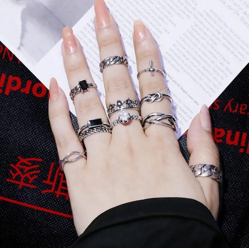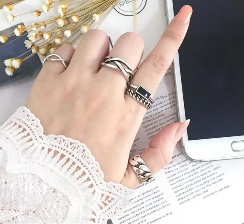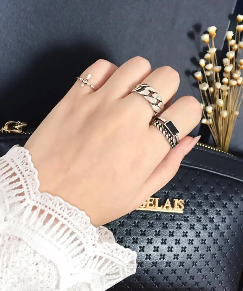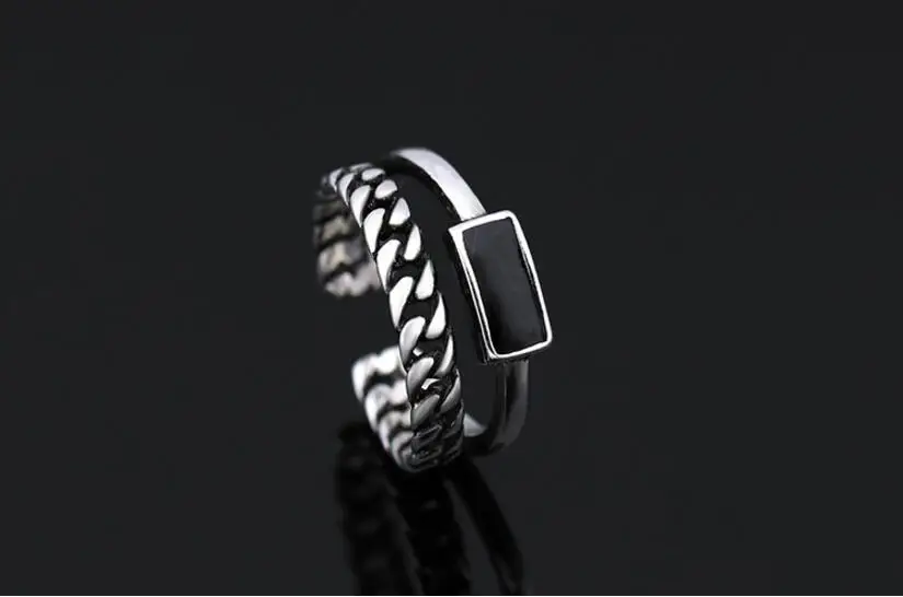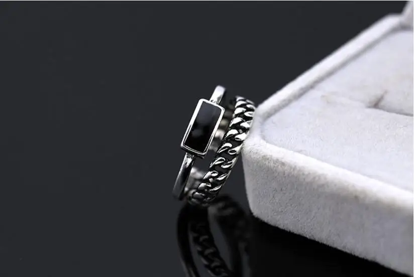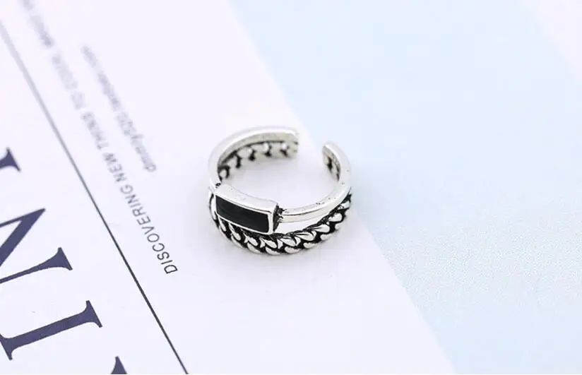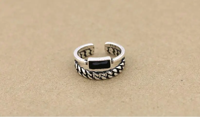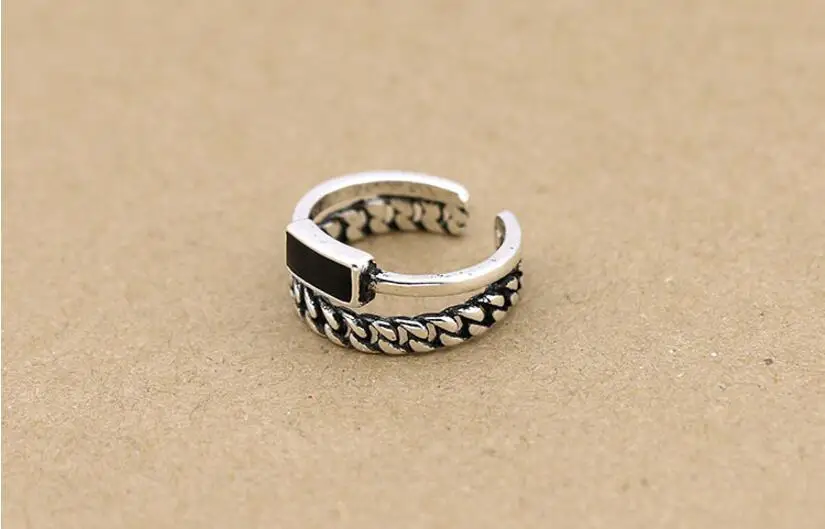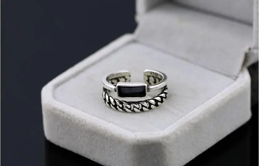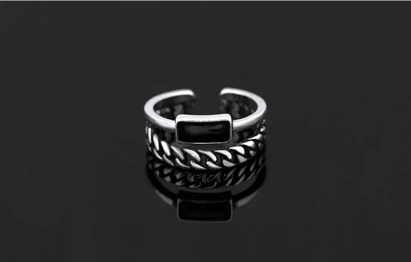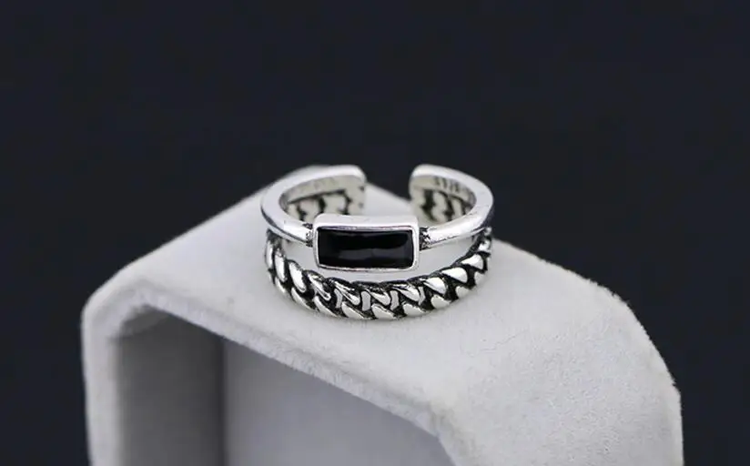 Anenjery Upscale 925 Sterling Silver Opening Ring Two Rows Twist Chain Irregular Epoxy Thai Silver Ring For Women bague S-R136