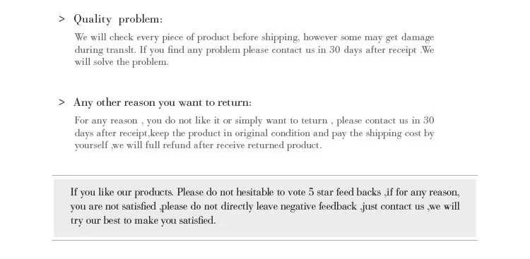 4.Express usually have customs clearance issue,in that case,please kindly cooperate with customs to pay tax.