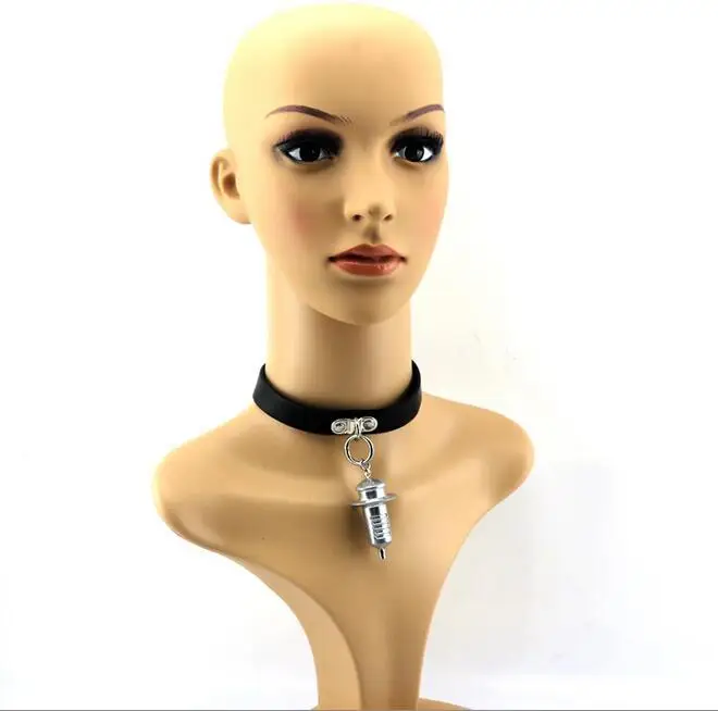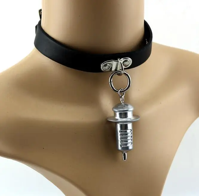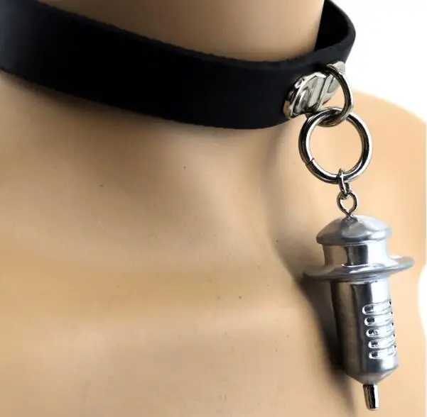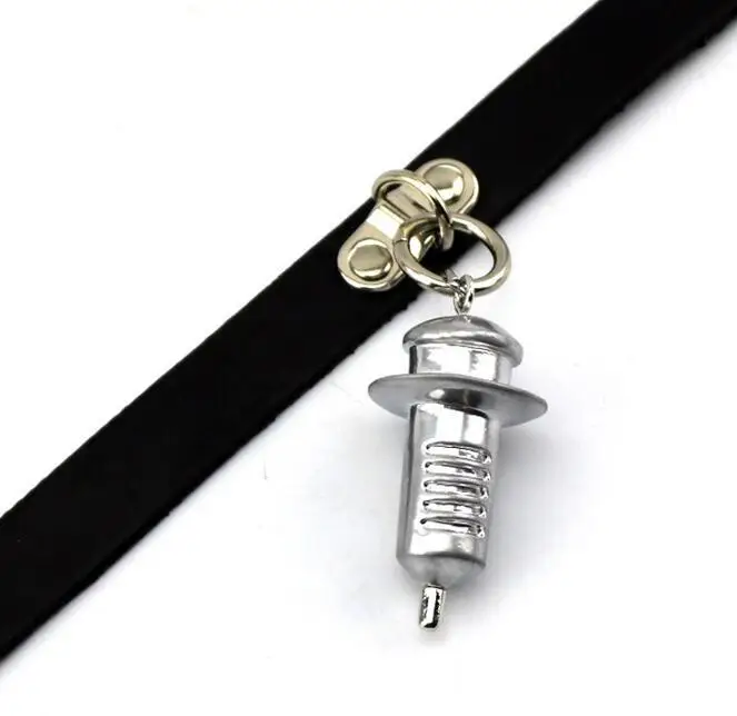 Anime Jewelry props Dramatical Murder Silver syringe Pendant Necklace cosplay Punk Leather Collar necklace