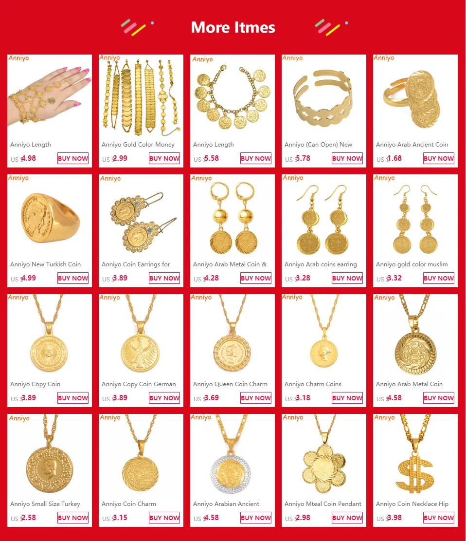 Anniyo Arab Coin Earring for Women Gold Color Turks Bride Wedding Gift/Middle East/Israel/Turkey #007706