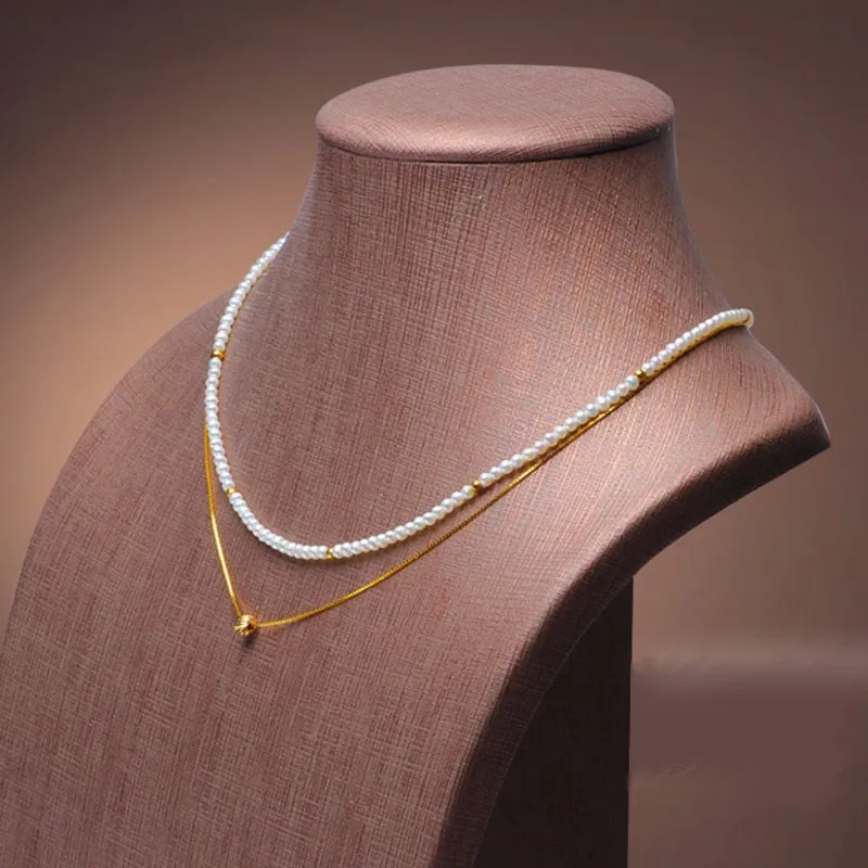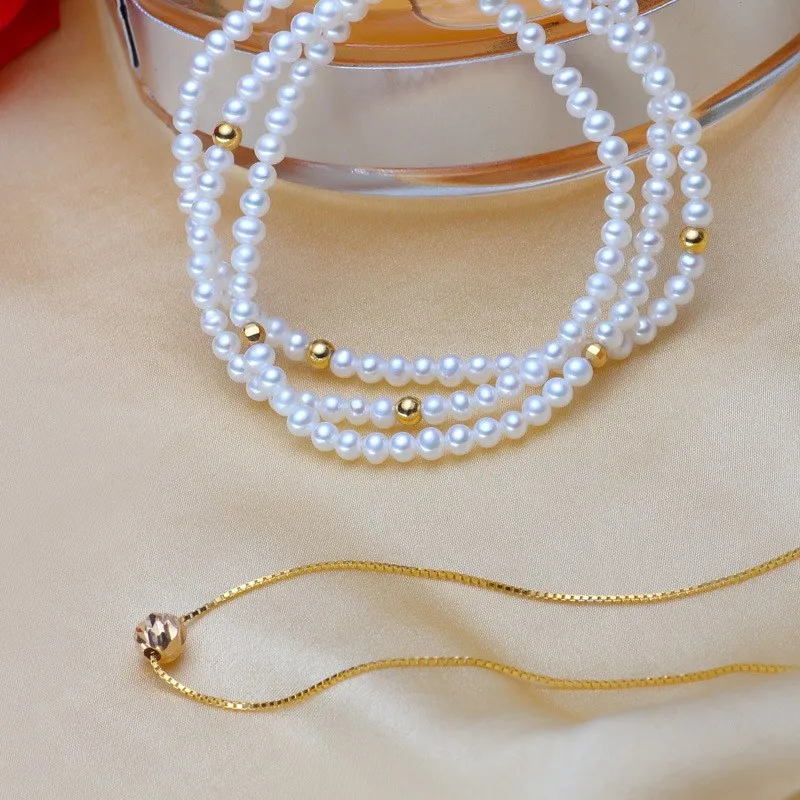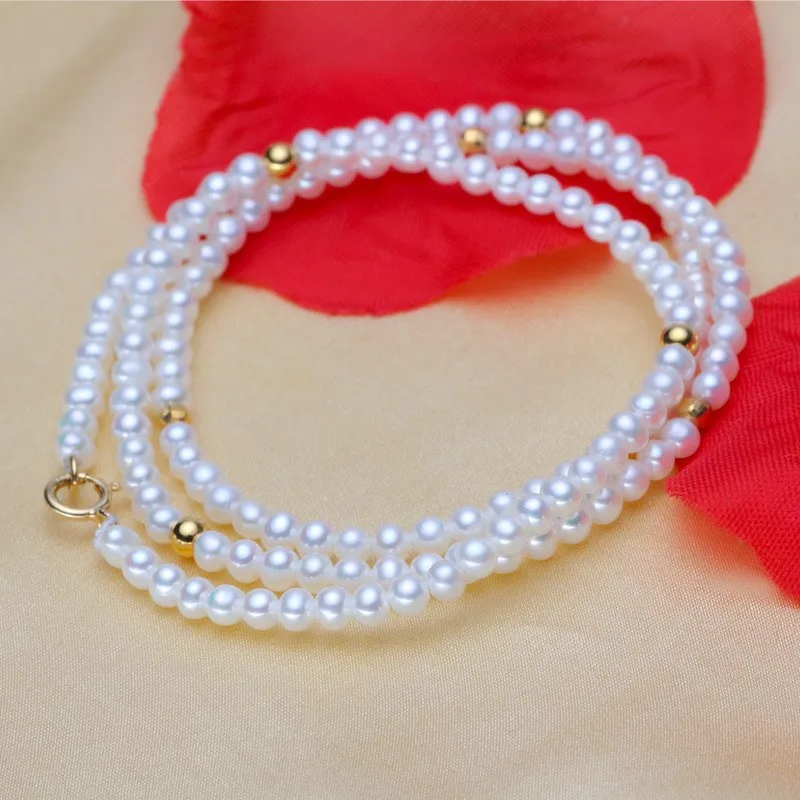 ASHIQ Real mini 3mm small natural White Freshwater Pearl Necklaces, 925 Sterling Silver jewelry for women