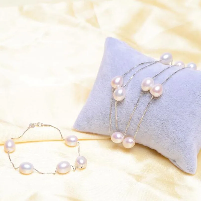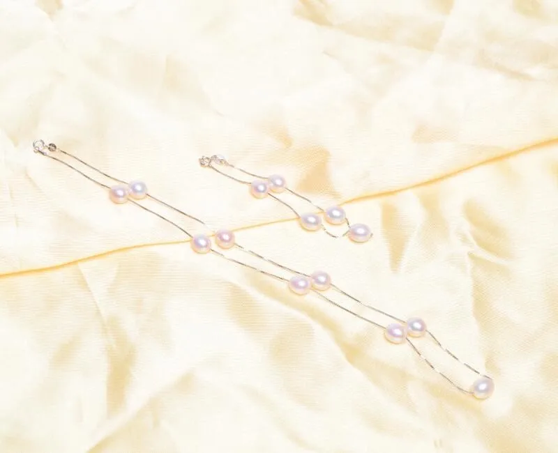 PRODUCT INFORMATION Brand : ASHIQI pearl size:6-7mm Pearl Shape: Rice Pearl Color: White/Pink/Purple Pearl Luster: Very Good Pearl Surface:Very Few Flaws Necklace circumference: 45cm Bracelets circumference: 18cm Packing: Jewelry box