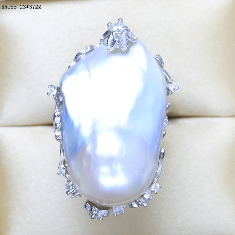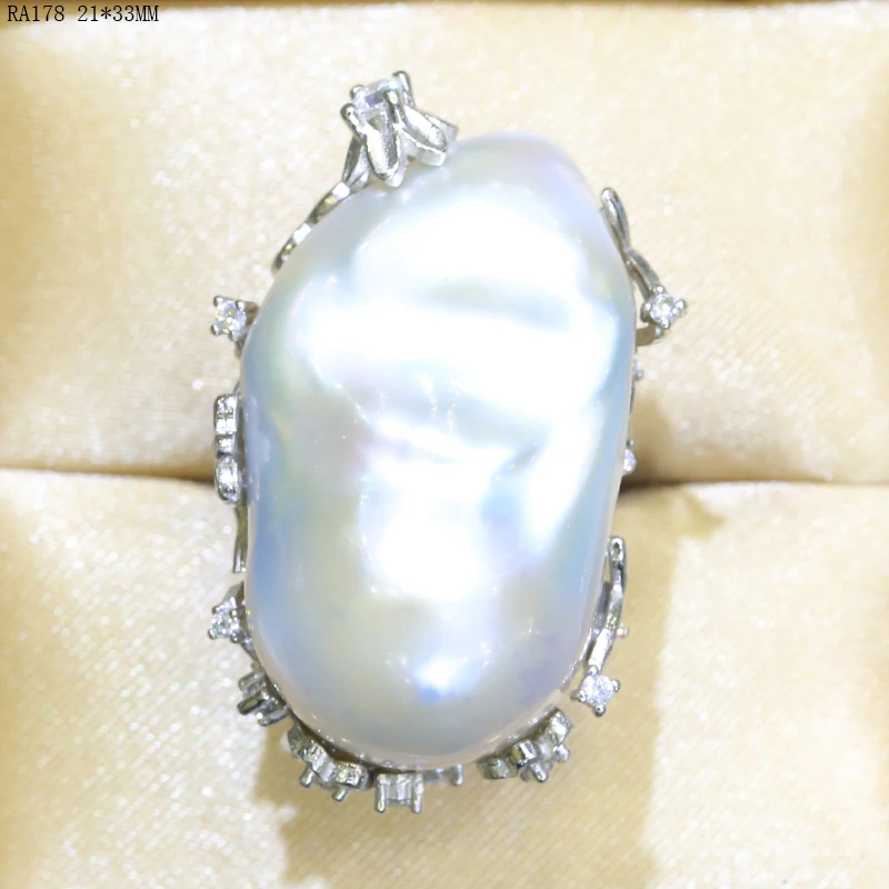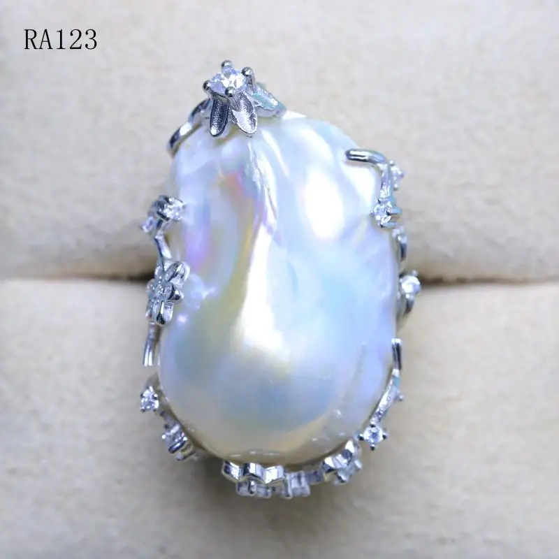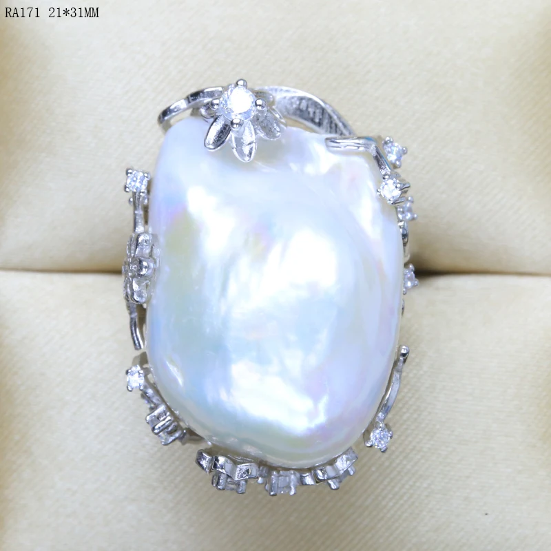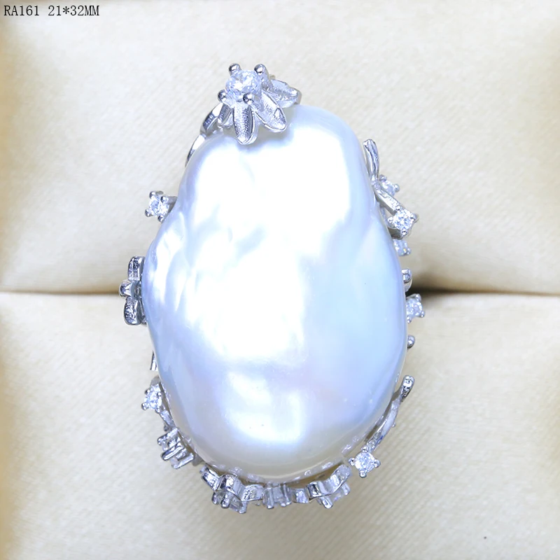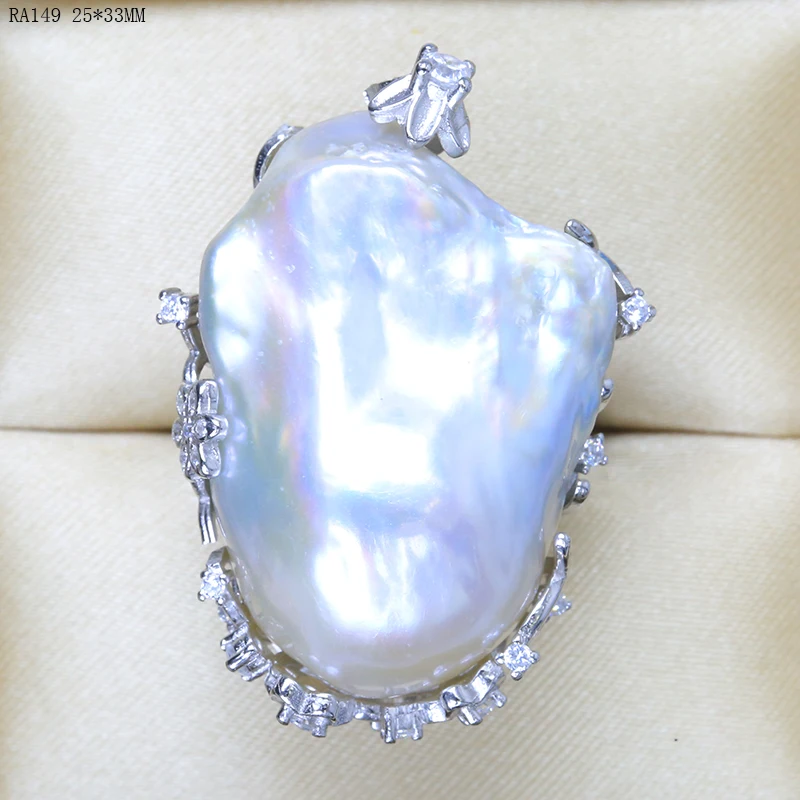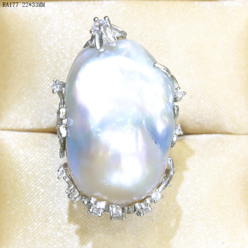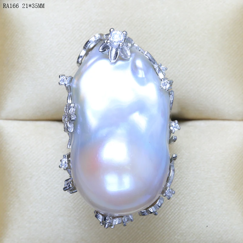 BaroqueOnly natural freshwater pearl 925 Silver Ring huge Size high gloss Baroque Irregular Pearl Ring, Women Gifts RA