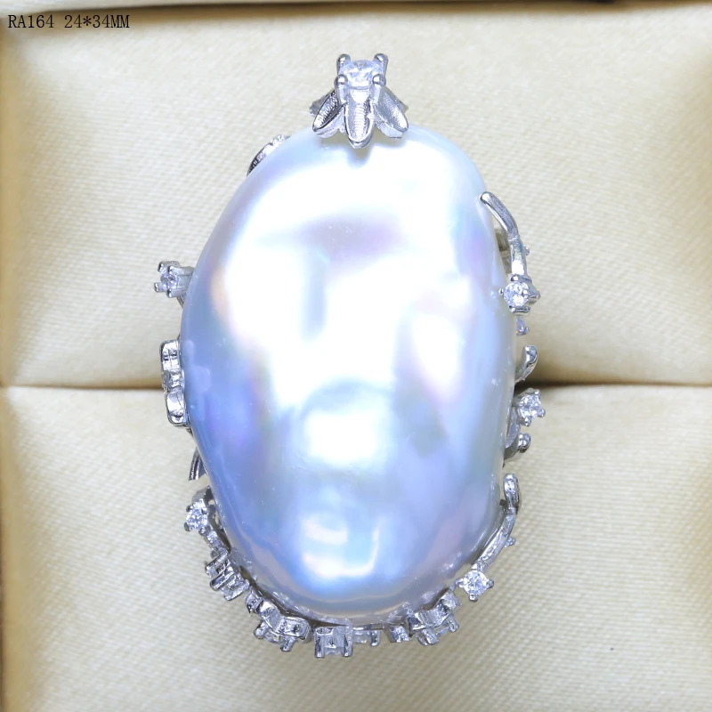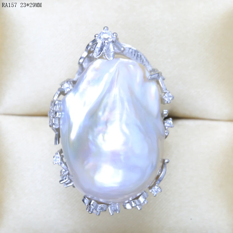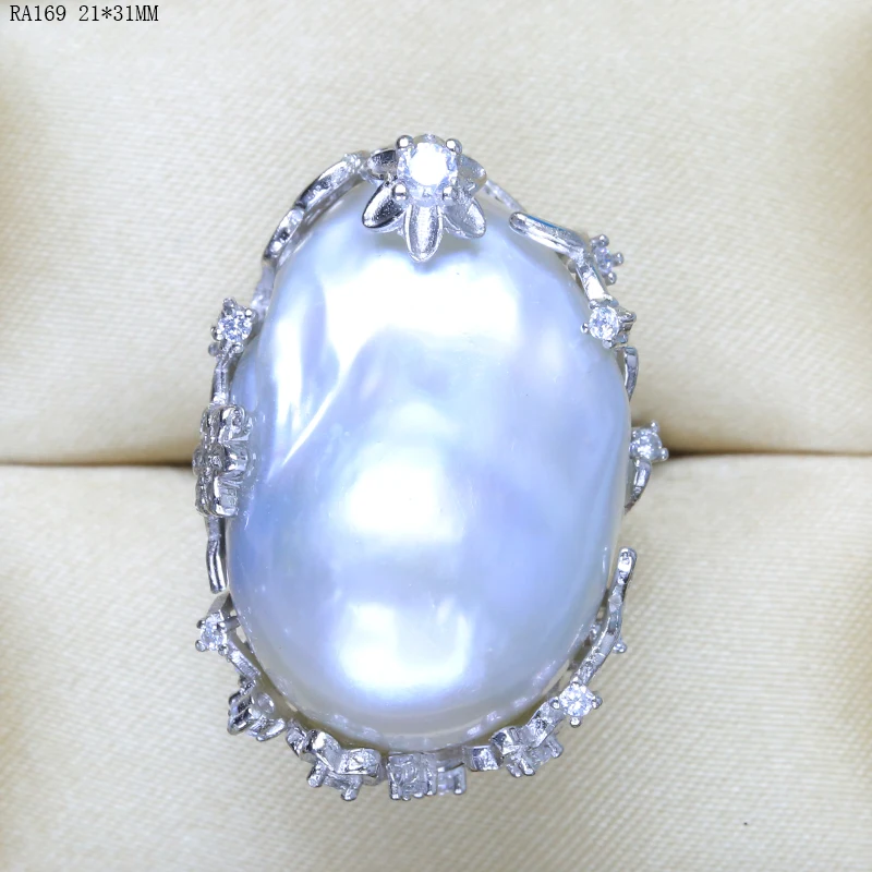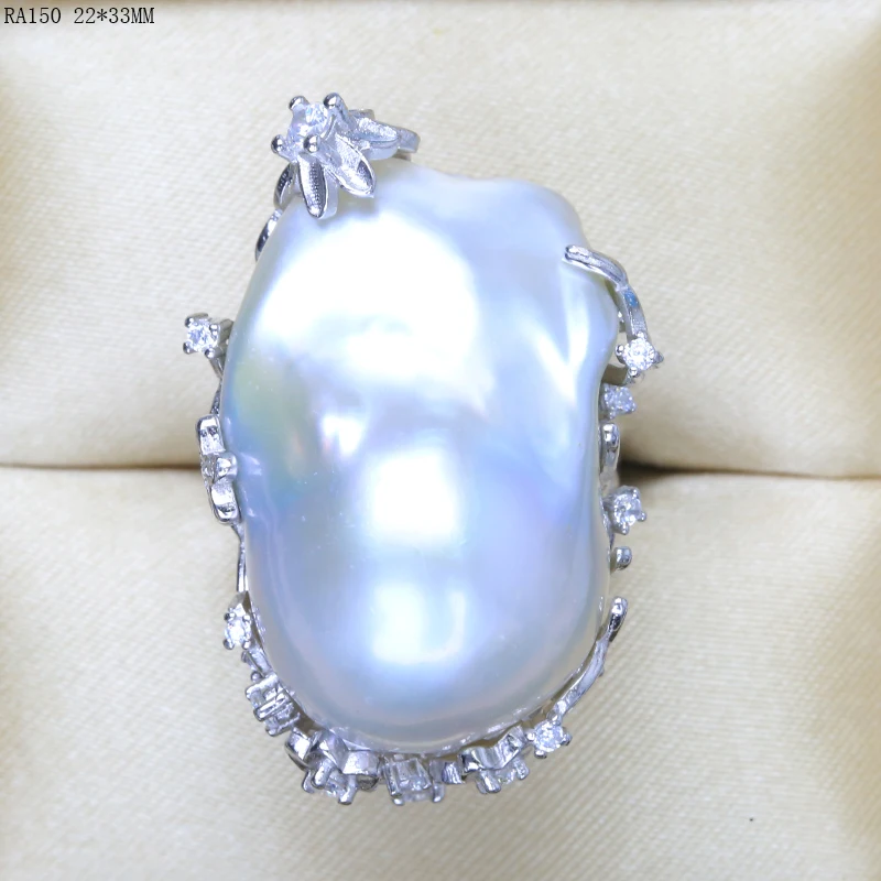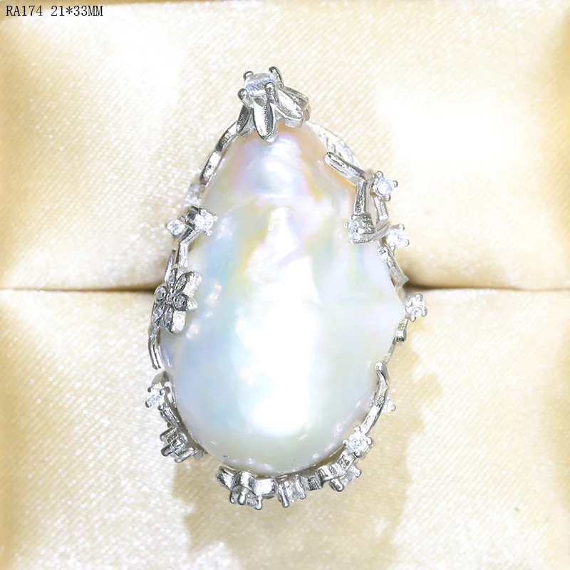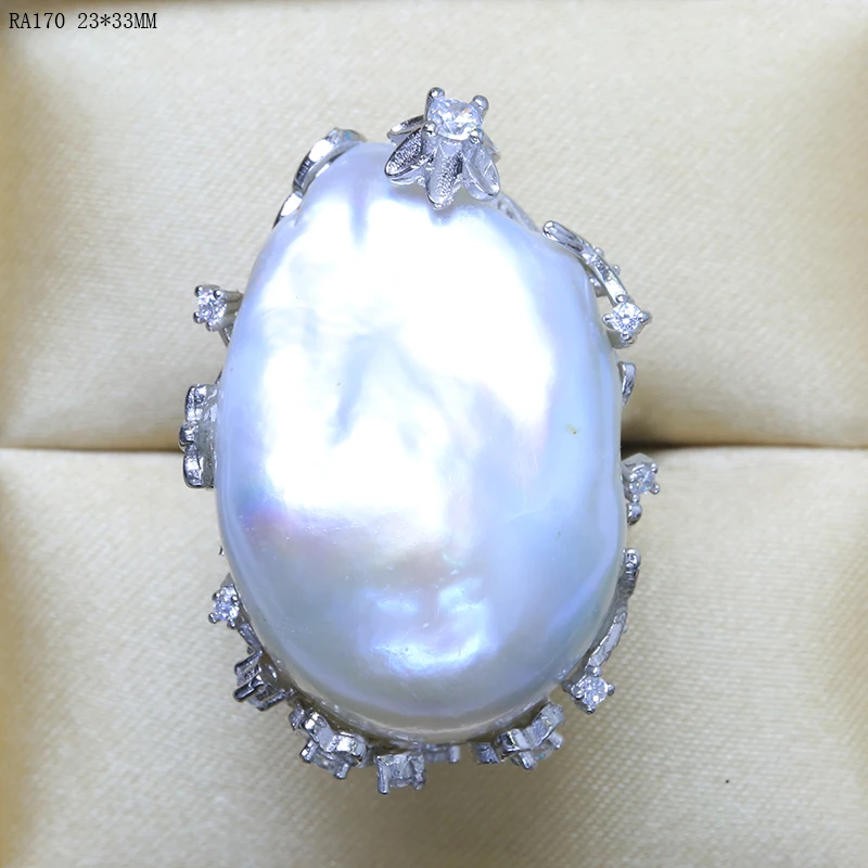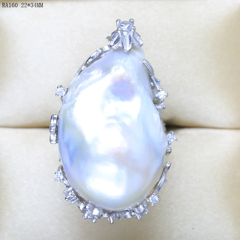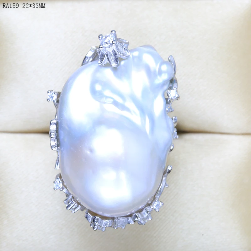 BaroqueOnly natural freshwater pearl 925 Silver Ring huge Size high gloss Baroque Irregular Pearl Ring, Women Gifts RA
