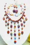 Beautiful Big 10mm Round Red Multicolor Stripe Stone pendant 18" necklace-nec5724