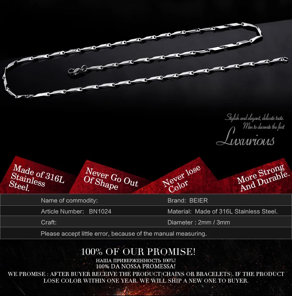 Beier stainless steel necklace melon seed new twist part gold trendy chain necklace boy man necklace chain Silver Color BN1024