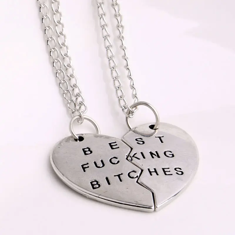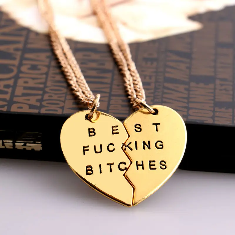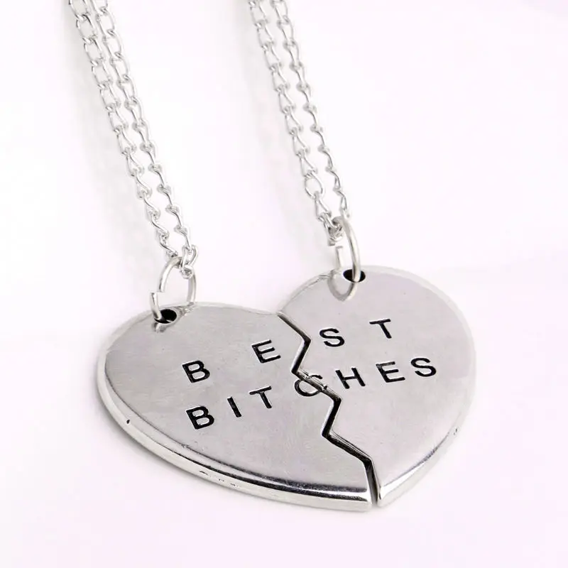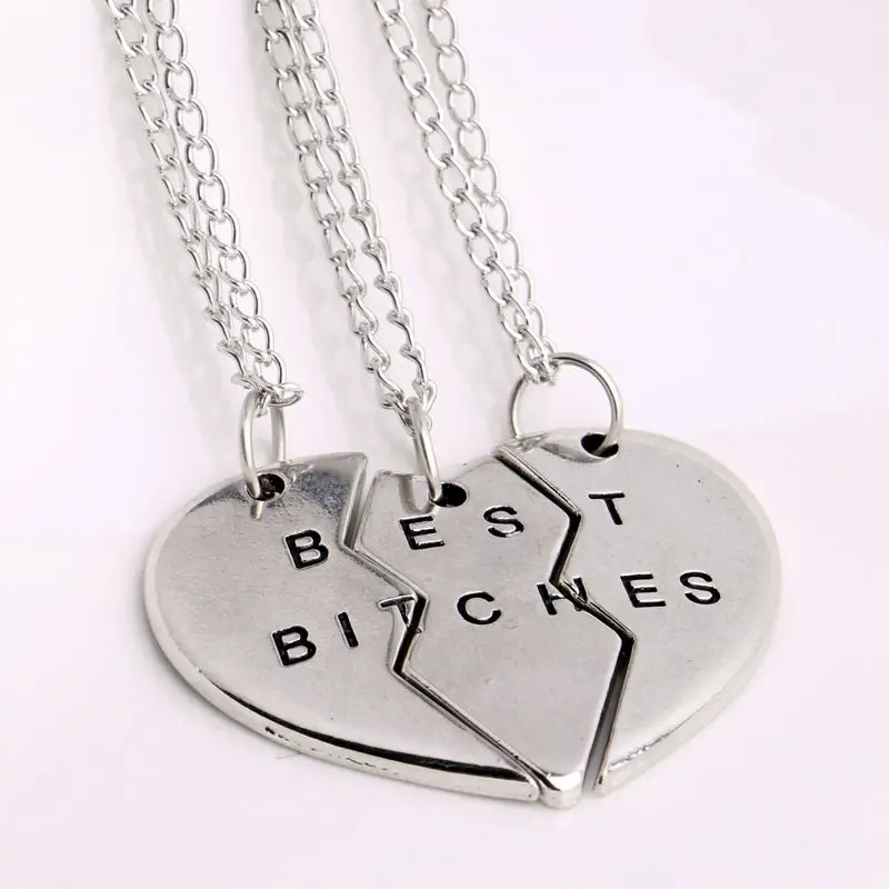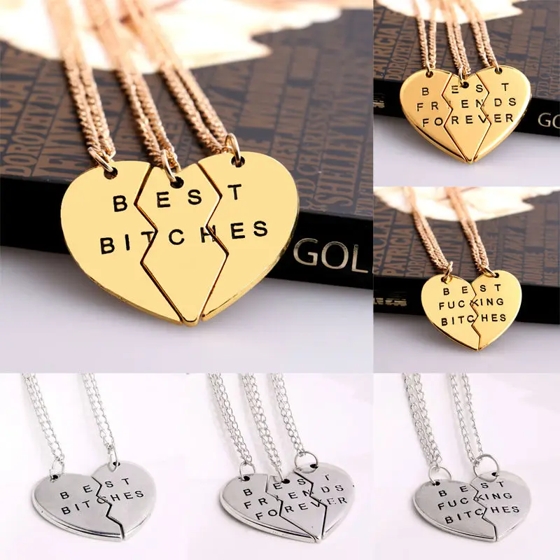 Bespmosp 2/3 PCS Broken Heart Pendant Necklace Gold Silver Plated Best Friends BFF Women Men Statement Jewelry Friendship Choker